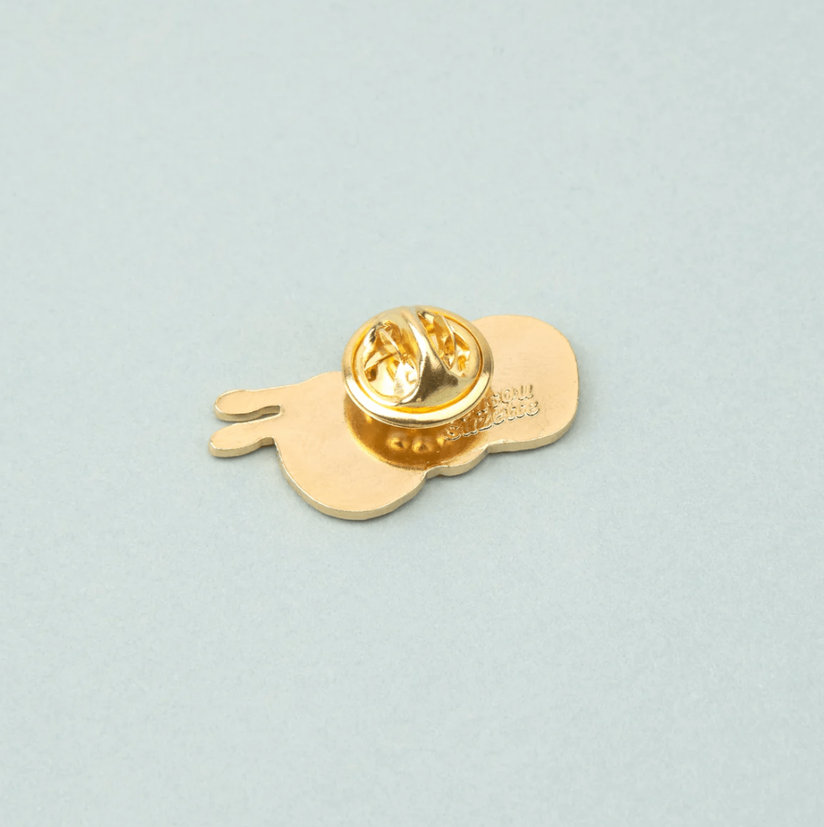 Pins formet som et lyseblått garnnøste med strikkepinner!