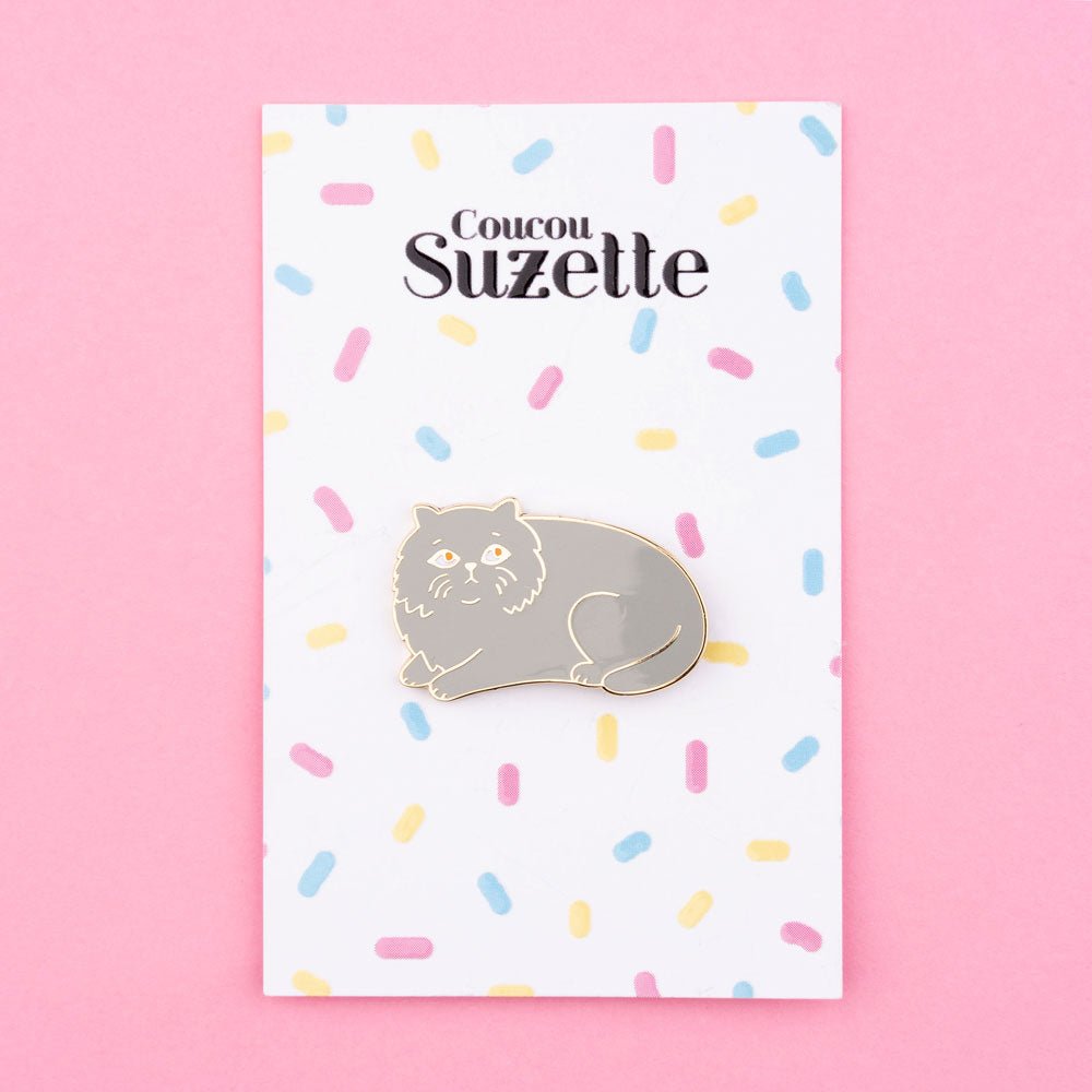 Pins med Coucou Suzette sin maskot: katten Suzette! En vakker grå perserkatt.