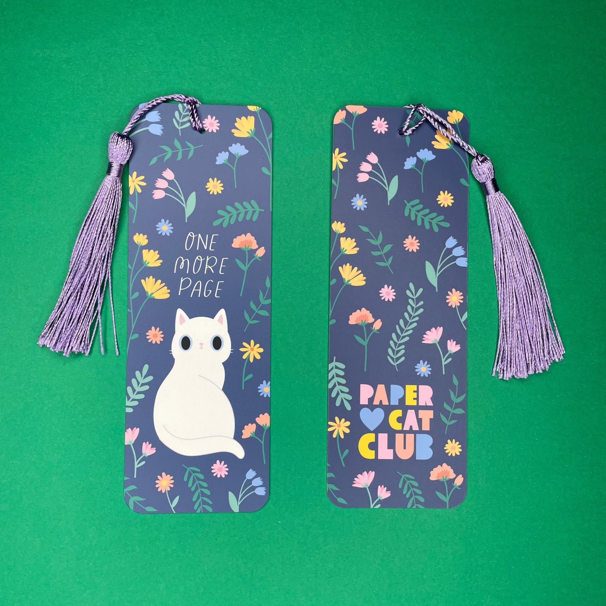 Dette dobbeltsidige bokmerket med syrinfarget dusk har den søteste lille katten omgitt av markblomster. Trykt på resirkulert tykt 350 g/m2 papir med matt laminat for å holde det vakkert.