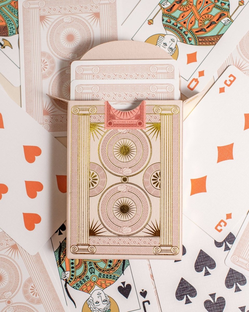 Olympia kortstokk er en originalt designet kortstokk med detaljerte illustrasjoner inspirert av mytologien rundt de tolv olympiske gudene. Finn tilbake til barndommens spillglede med en moderne kortstokk.