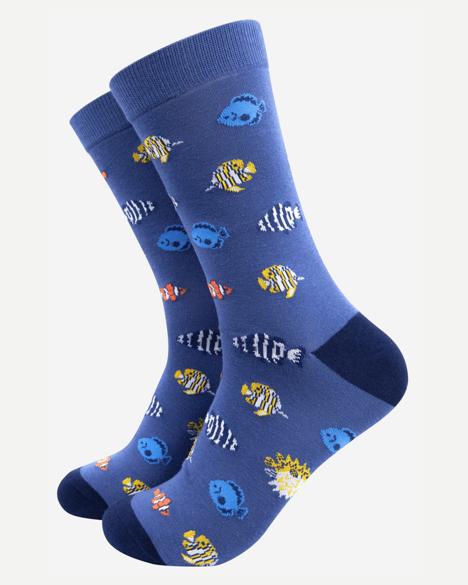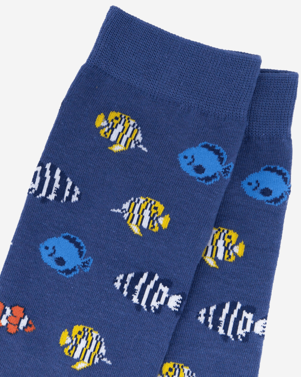 Bambussokker i blått med tropiske fisk. Størrelse 41-45.