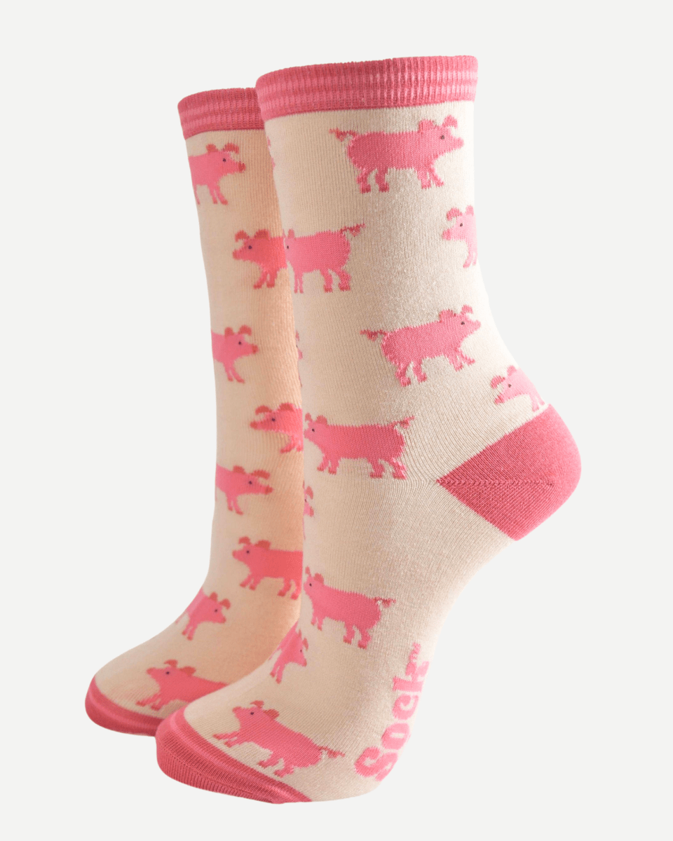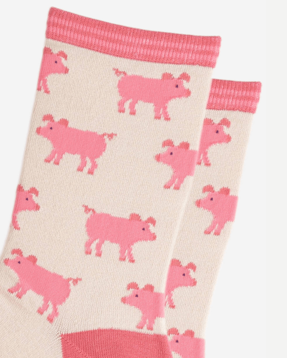 Bambussokker i kremfarge med rosa griser. Størrelse 36-40.