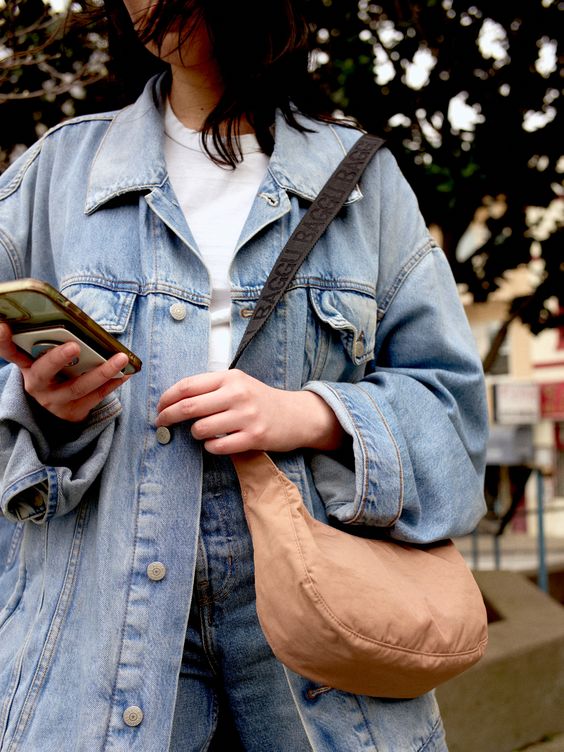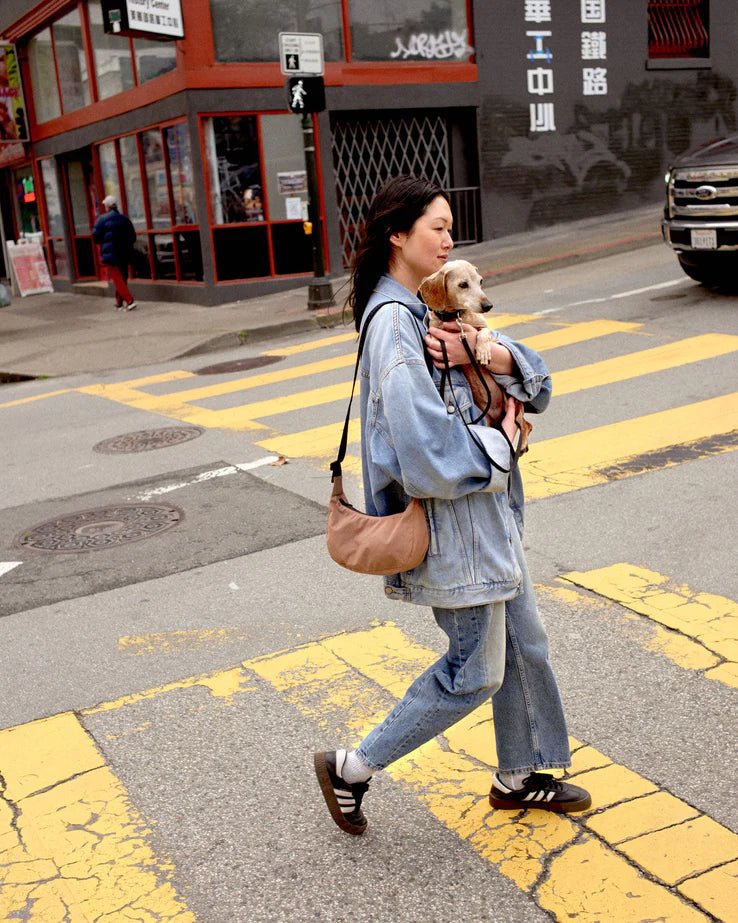 BAGGU Small Crescent Bag i fargen Cocoa er en allsidig veske med en deilig kakaofarge som passer de fleste antrekk året rundt. Du får plass til mobil, lommebok og solbriller pluss litt rom til overs. Sleng den over skulderen eller bær den tvers over kroppen for en praktisk hands-free opplevelse.