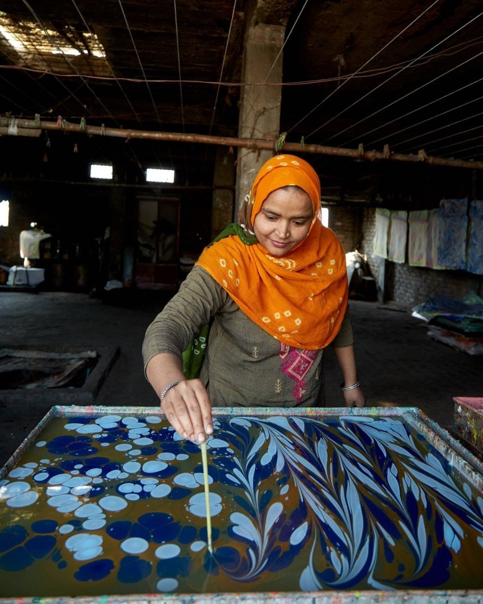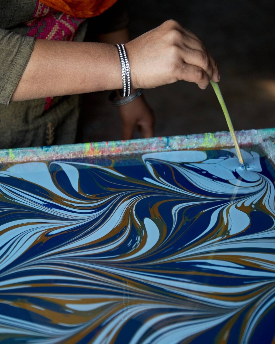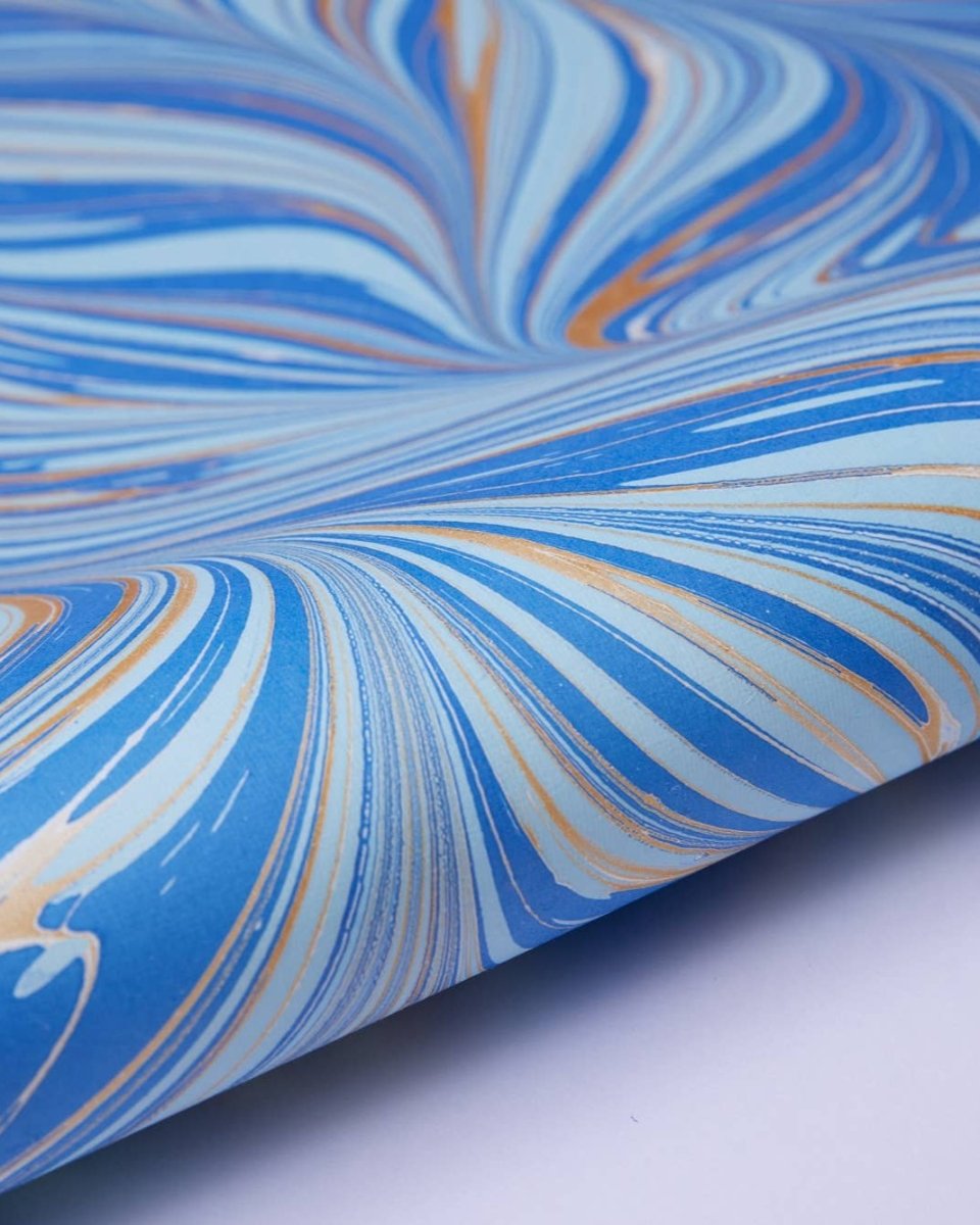Håndlaget marmorert gavepapir. Hvert ark er dyppet i vannkar med maling på overflaten - derfor er alle papirene unike kunstverk! Mønstrene er ikke trykt med silketrykk eller digitalt masseprodusert.