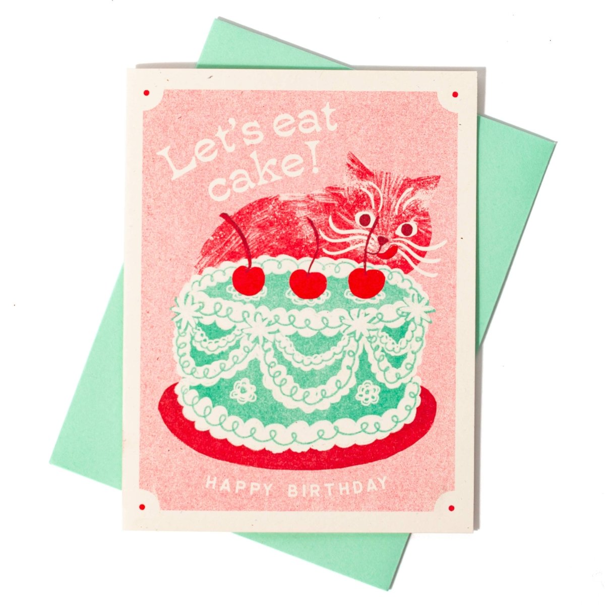 Let's Eat Cake Cat - Risograf Bursdagskort