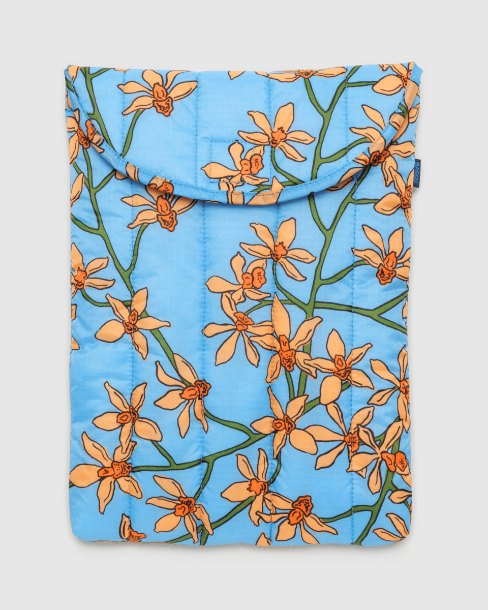 Baggu sin puffy laptop-sleeve er quiltet og fylt for å gi din 13"/14" laptop eller nettbrett akkurat nok polstring for komfortable reiser.
