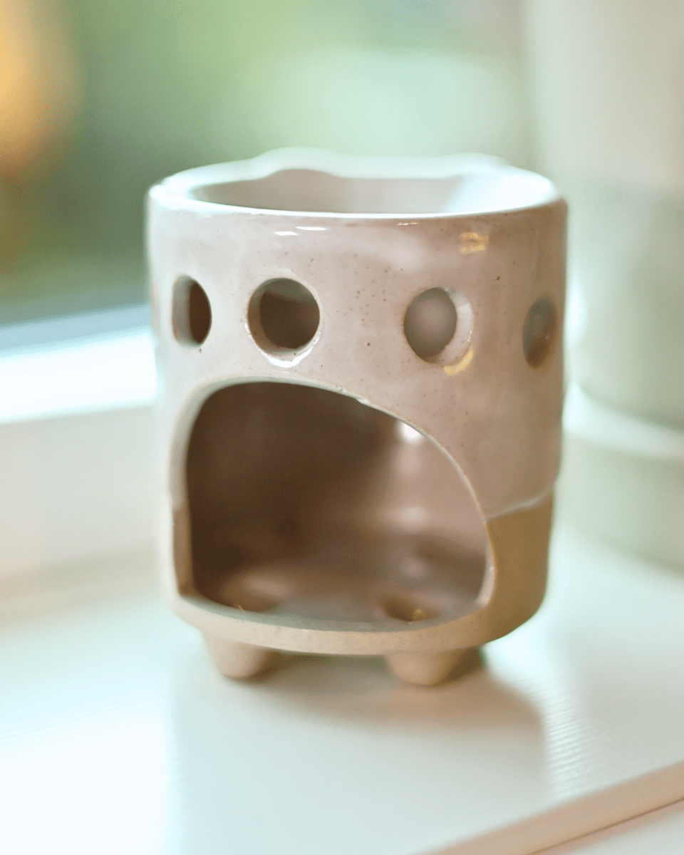 Plasser din favoritt wax-melt eller eteriske olje blandet med vann i skålen på toppen, sett et telys under – len deg tilbake og la den beroligende duften spre seg.