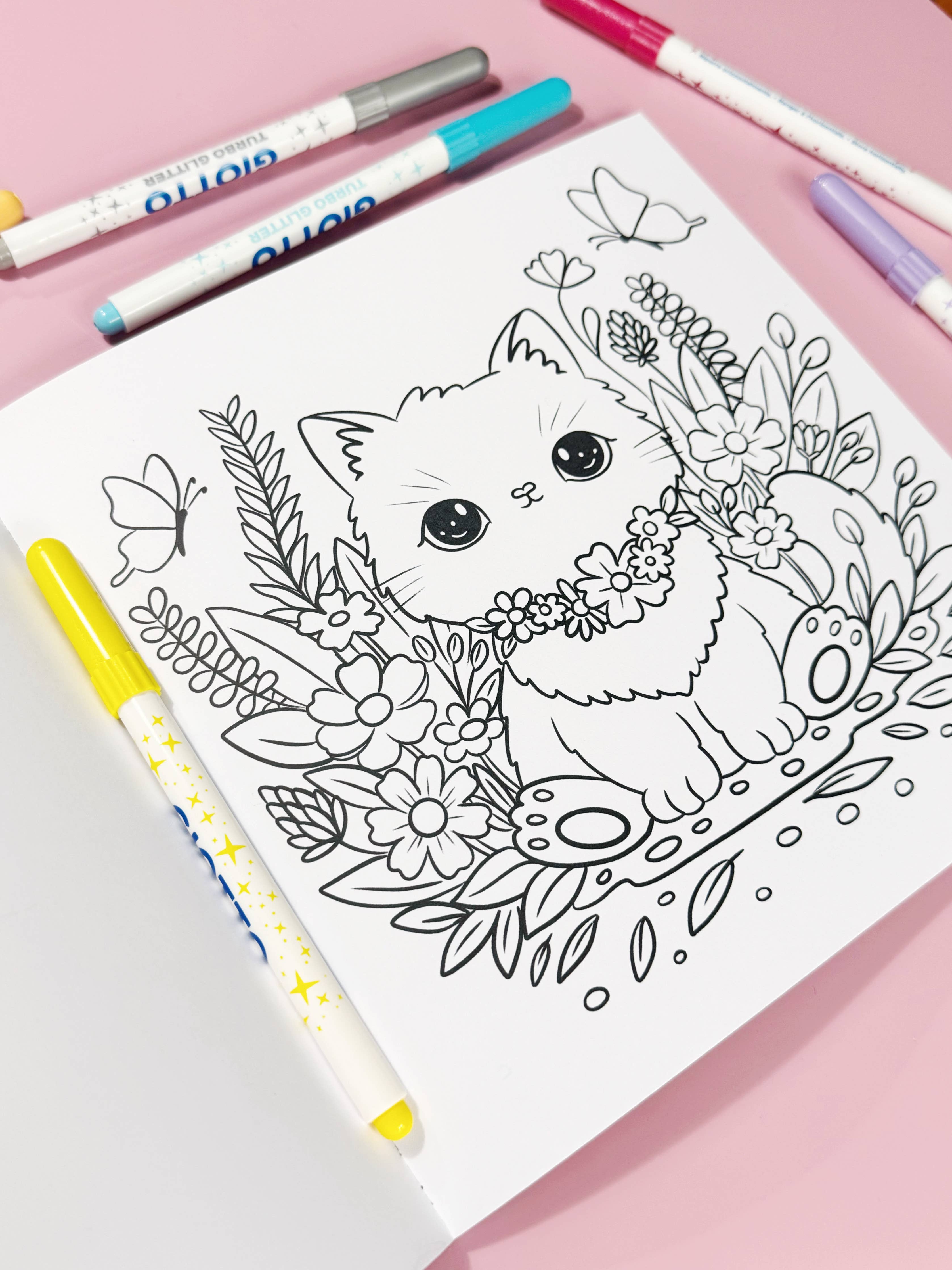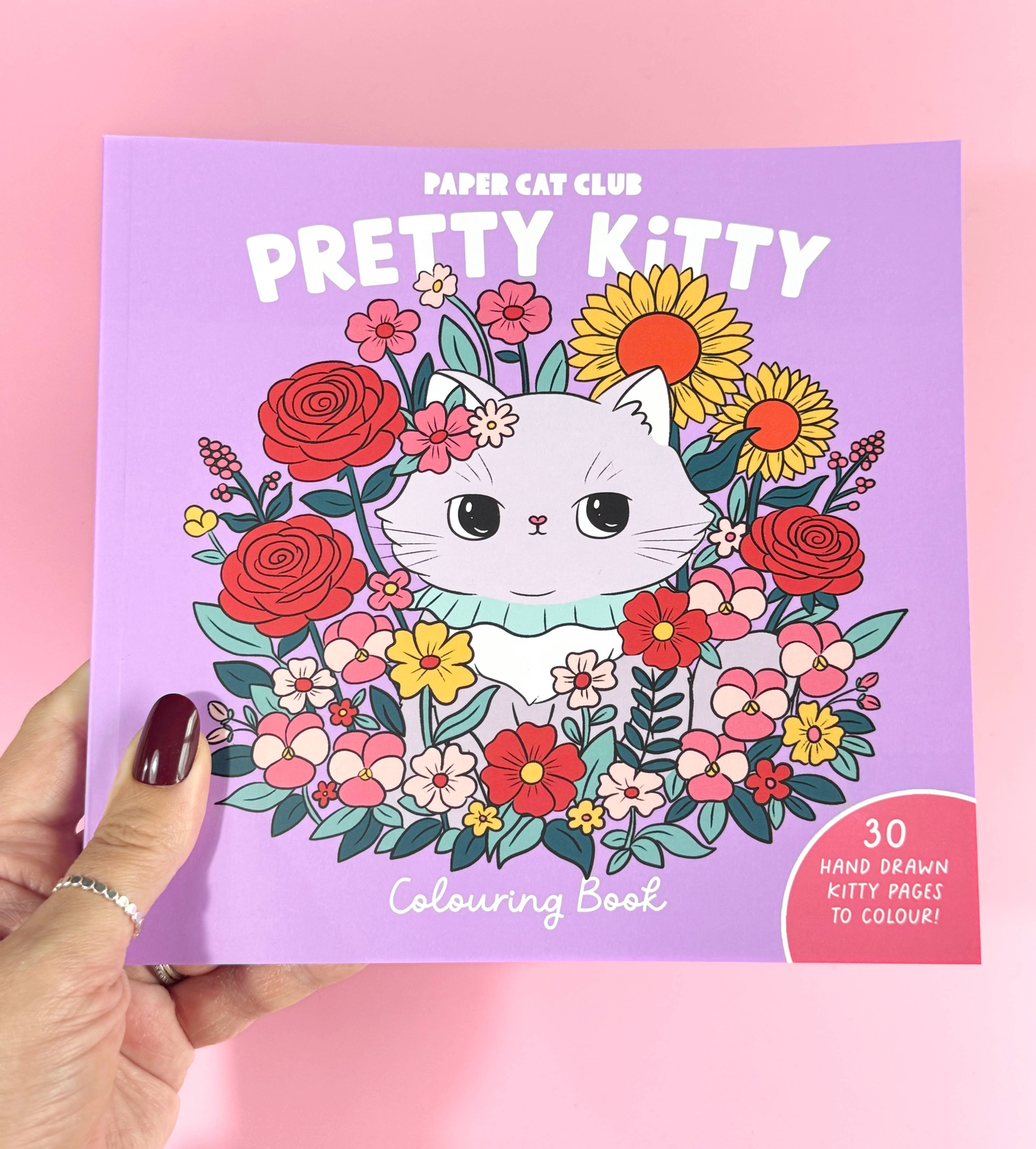 Slipp kreativiteten løs med Pretty Kitty Colouring Book – Paper Cat Club sin aller første fargebok! Her får du 30 sider med supersøte, håndtegnede kawaii-katteillustrasjoner. Hvert motiv viser herlige pusevenner i drømmende, blomsterinspirerte scener – perfekt for timer med avslappende og koselig fargelegging.