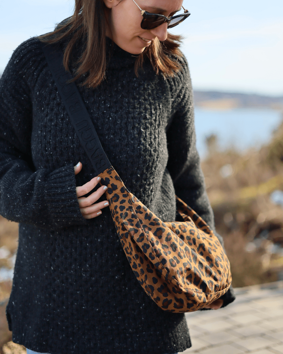 Praktisk trenger ikke å være kjedelig! BAGGUs Medium Nylon Halvmåneveske er avslappet og romslig nok til å bære mer enn bare det mest nødvendige. Sleng den over skulderen eller bær den tvers over kroppen for en praktisk hands-free opplevelse. Den har også to innerlommer som gjør det enkelt å holde orden.