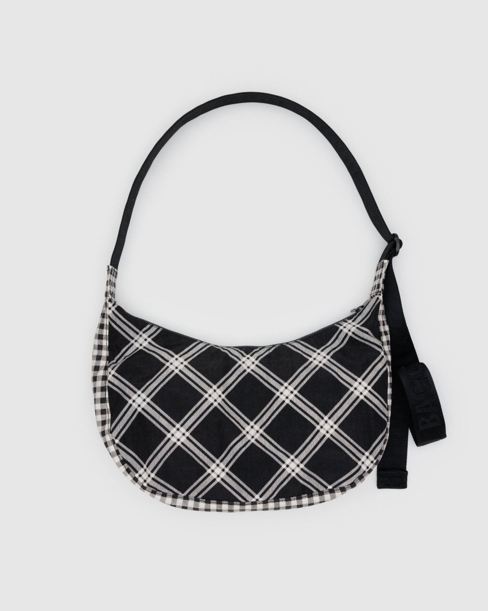 Praktisk trenger ikke å være kjedelig! BAGGUs Medium Nylon Halvmåneveske er avslappet og romslig nok til å bære mer enn bare det mest nødvendige. Sleng den over skulderen eller bær den tvers over kroppen for en praktisk hands-free opplevelse. Den har også to innerlommer som gjør det enkelt å holde orden.