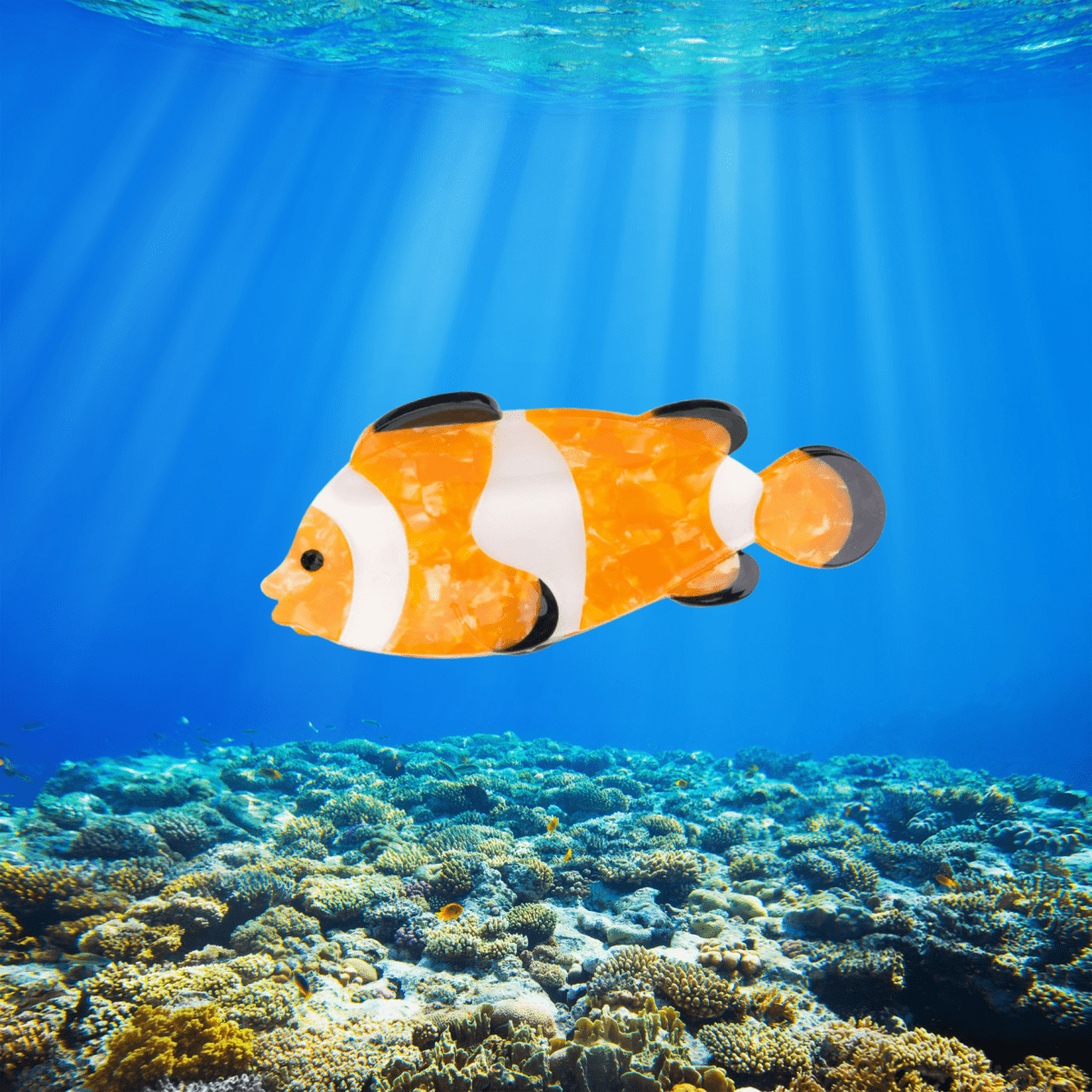 Supersøt hårklype med en oransje klovnefisk som i tegnefilmen Nemo.