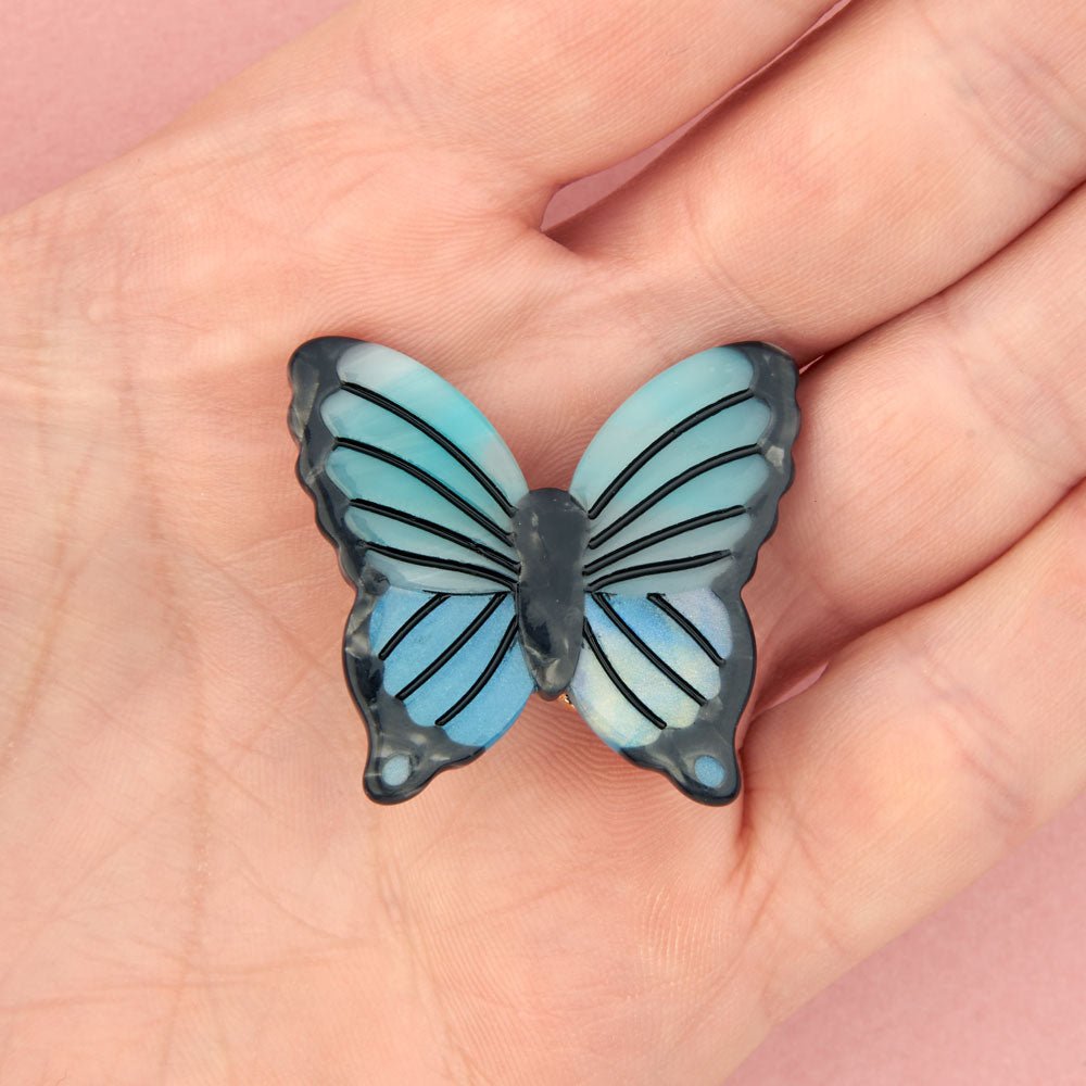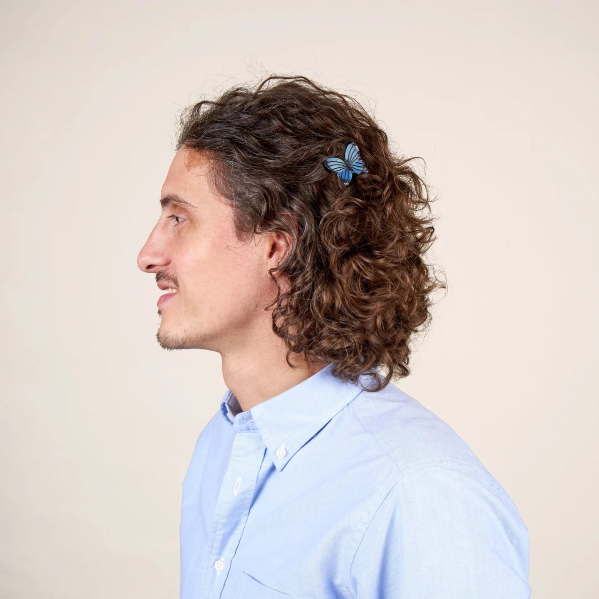 Søt hårspenne med en blå sommrfugl. Spennen har tagger som gjør at den sitter godt i håret!