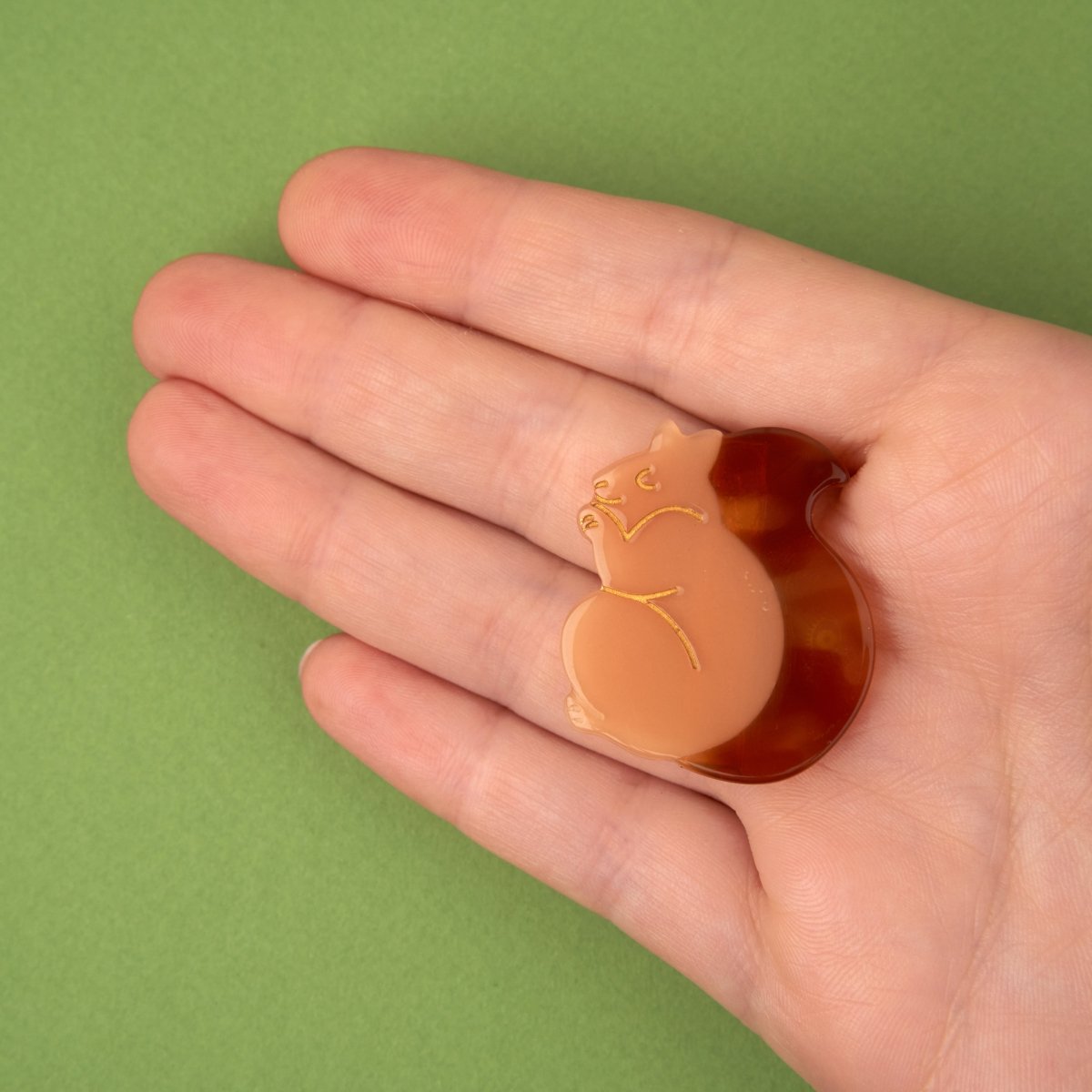 Hårspenne med et søtt ekorn. Spennen har tagger som gjør at den sitter godt i håret!