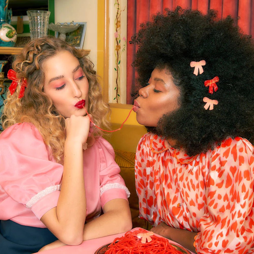 Rød sløyfeformet hårspenne. En sløyfe som holder seg perfekt hele dagen. Spennen har tagger som gjør at den sitter godt i håret!