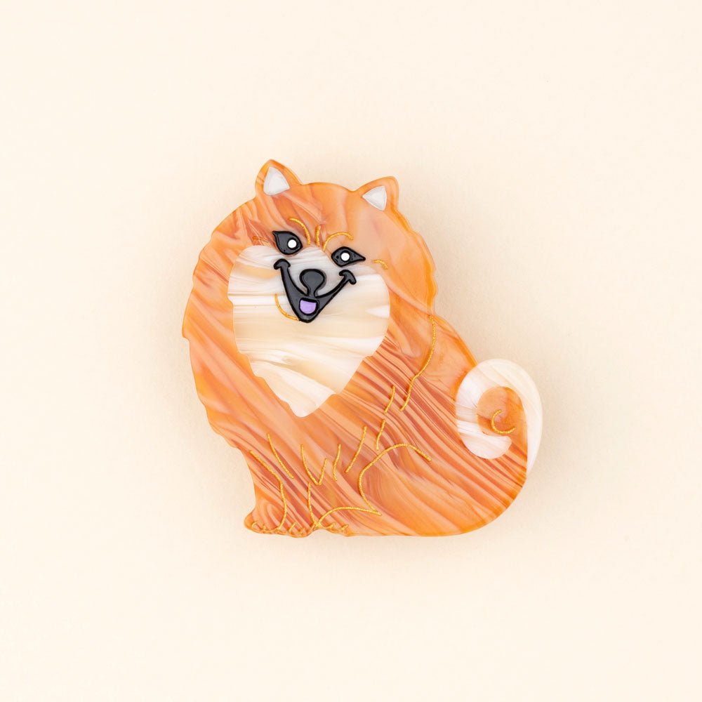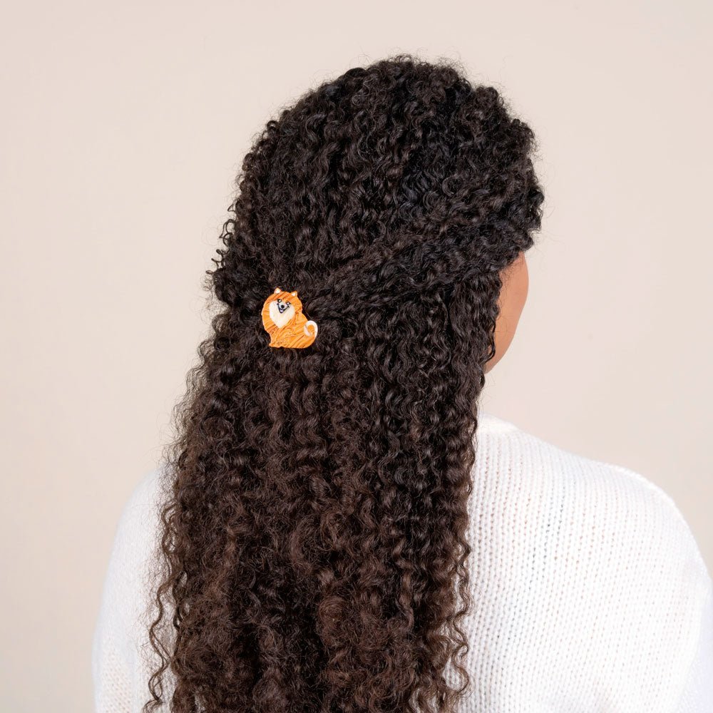 Søt hårspenne med en spisshund. Spennen har tagger som gjør at den sitter godt i håret!