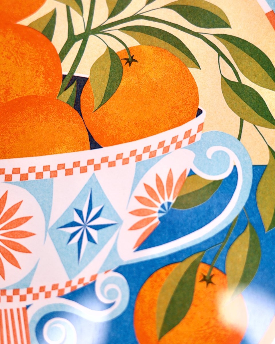 Risografier er trykket et fargelag om gangen ved hjelp av sjablonger. Registrering mellom fargelag og dekning vil variere mellom utskrifter og partier, disse små ufullkommenhetene er alle en del av utskriftsprosessen og gjør hvert trykk unikt.
