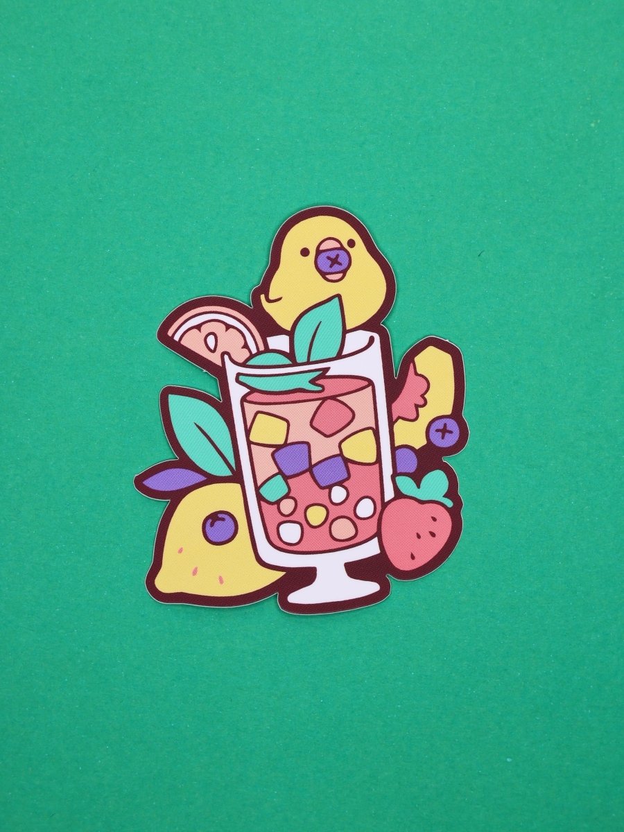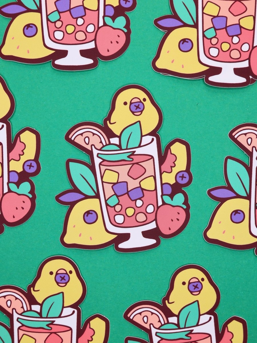 Et fargerikt klistremerke av en liten fugl som spiser bær fra en boba te. Perfekt for å pynte opp vannflasker, postkasse, laptop, mobildeksler, permer, kofferten som kjennetegn, med mer! 🌟💖