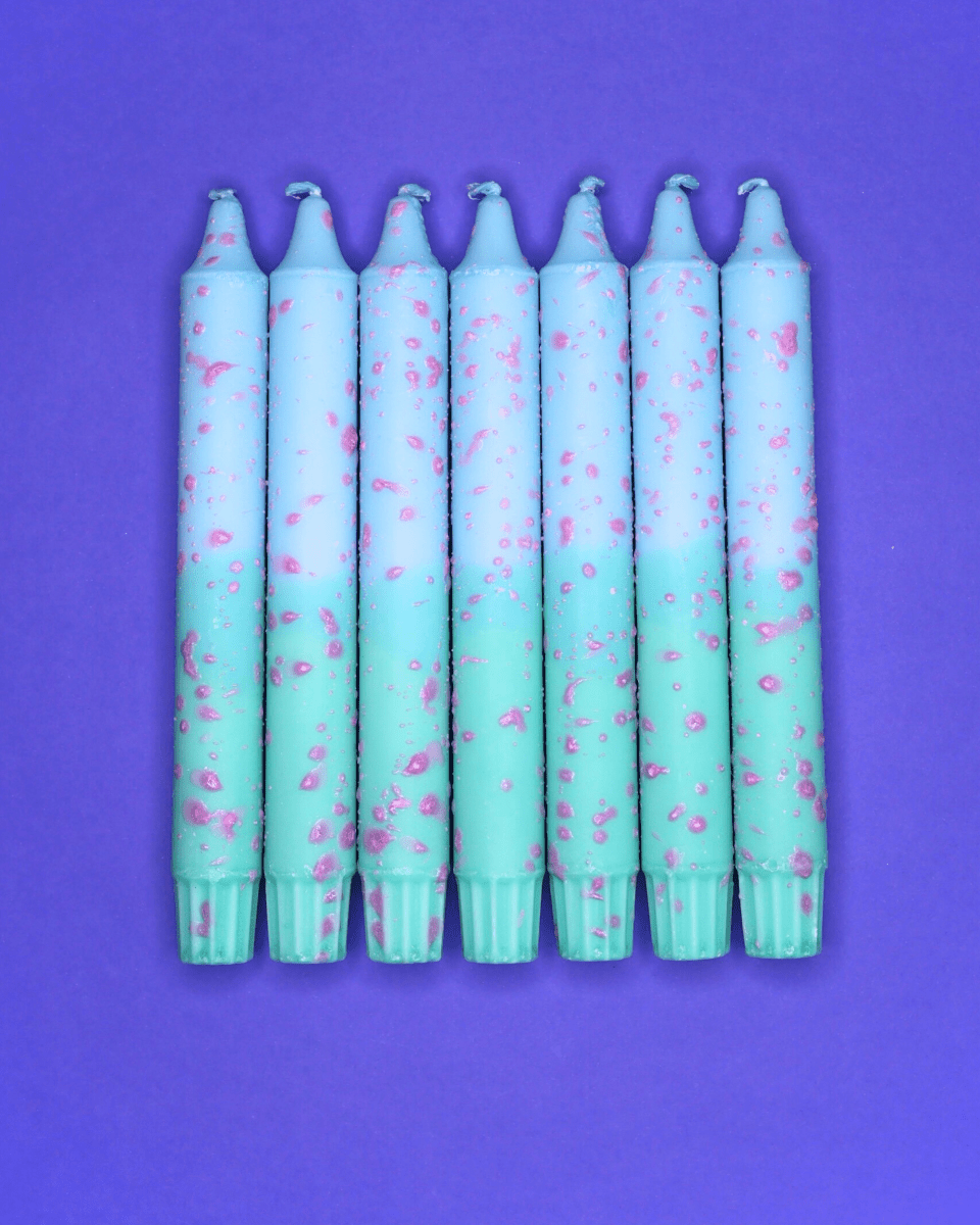Kronelys - Blå og Mint med Rosa Konfetti