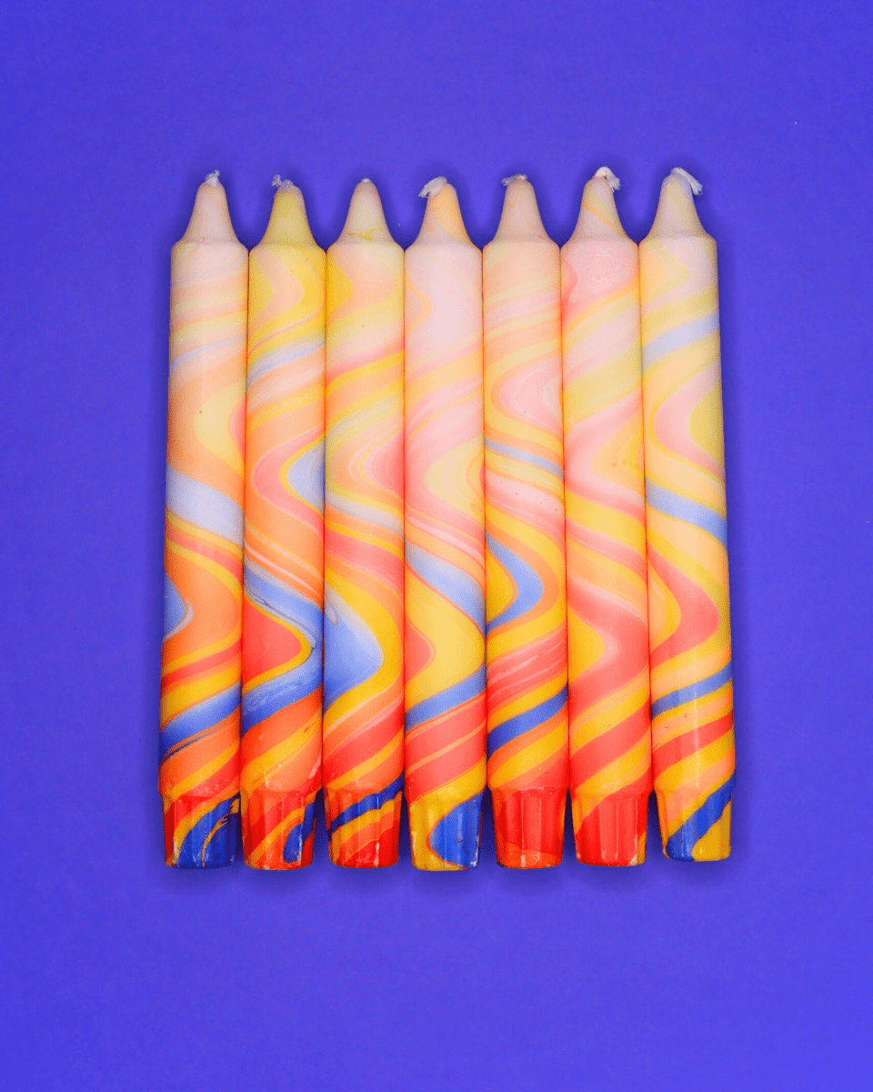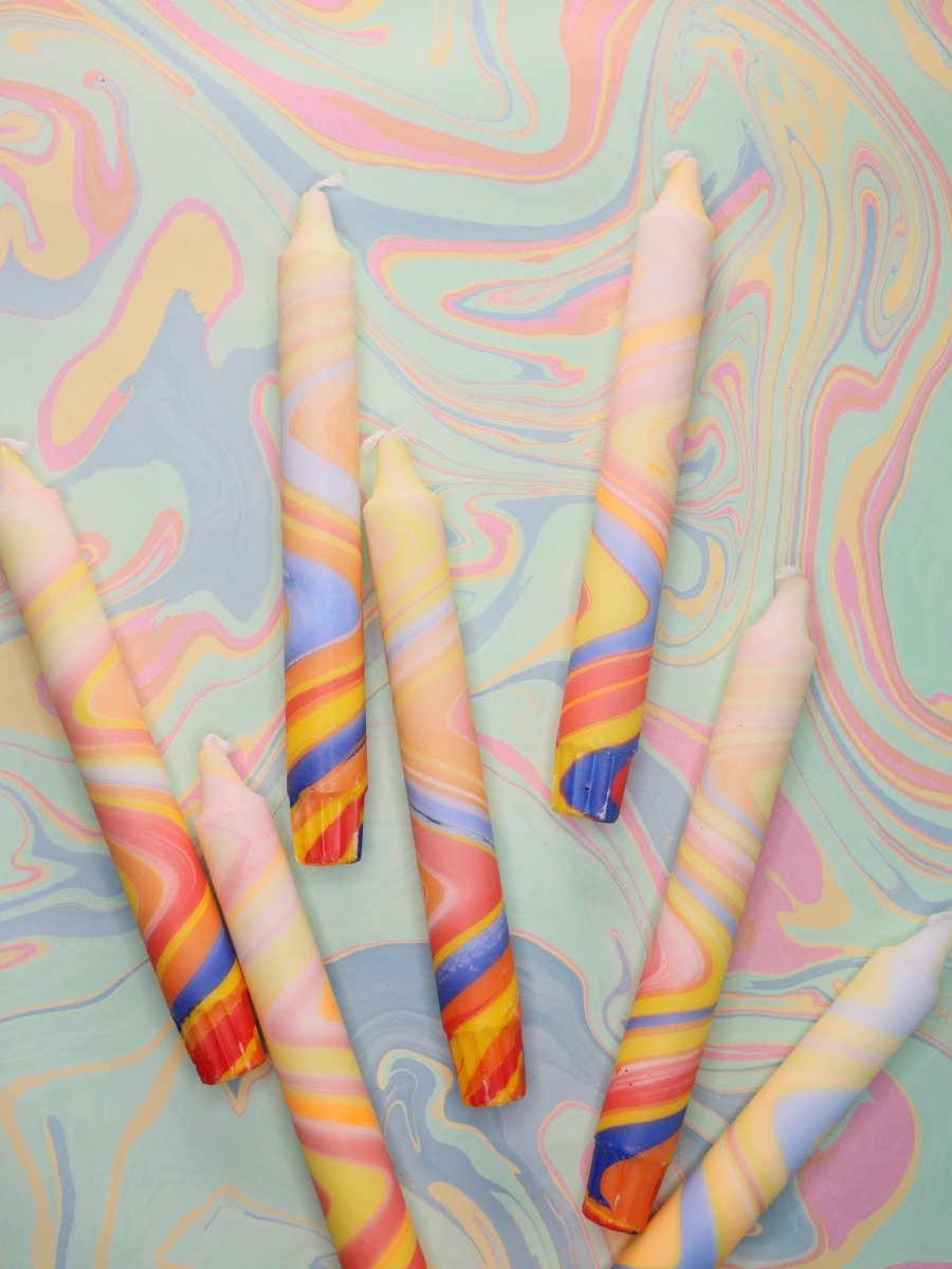Disse fargerike kronelysene er laget i København av Nordtrice Candles og gir et unikt og levende uttrykk til ethvert rom.