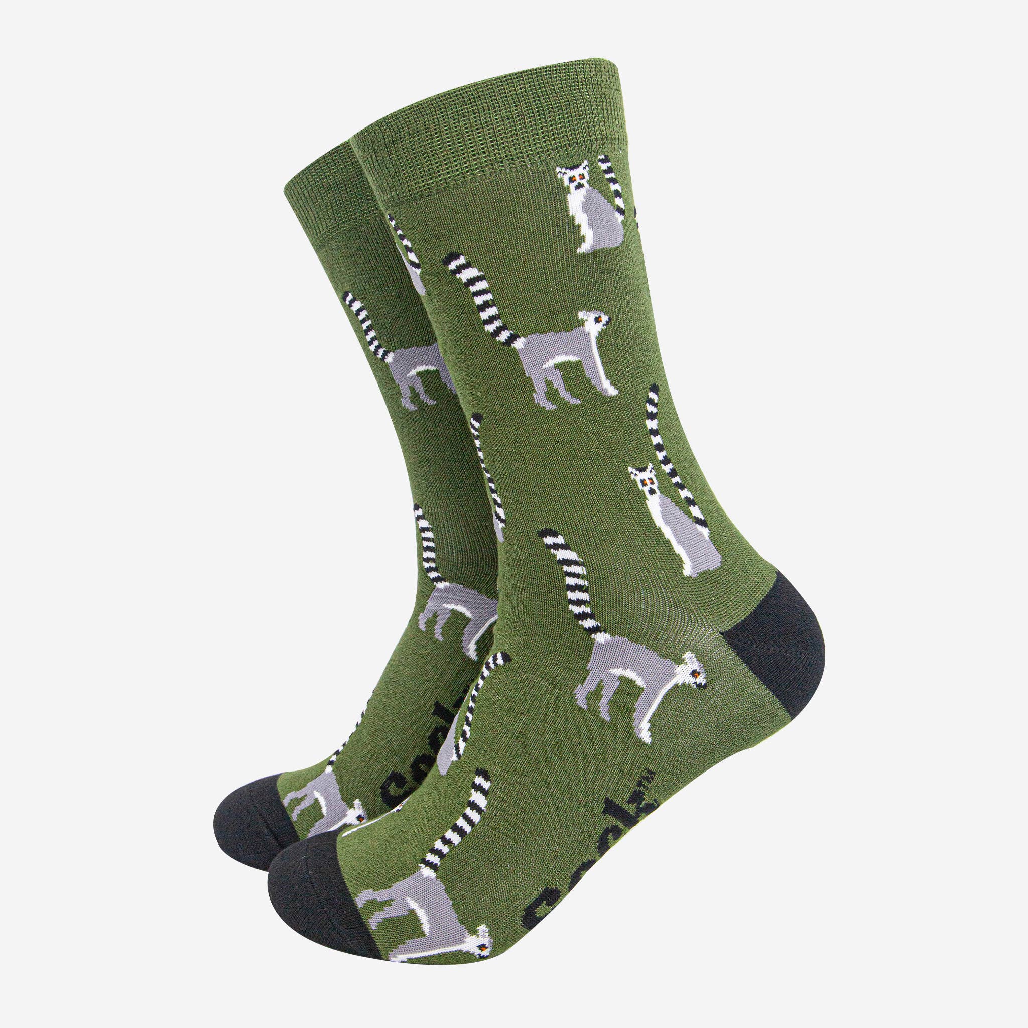 Bambussokker i grønt med lemurer. Størrelse 41-45.