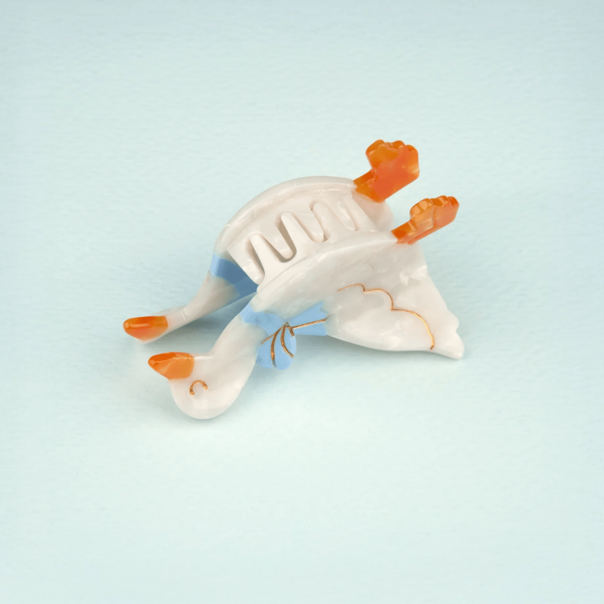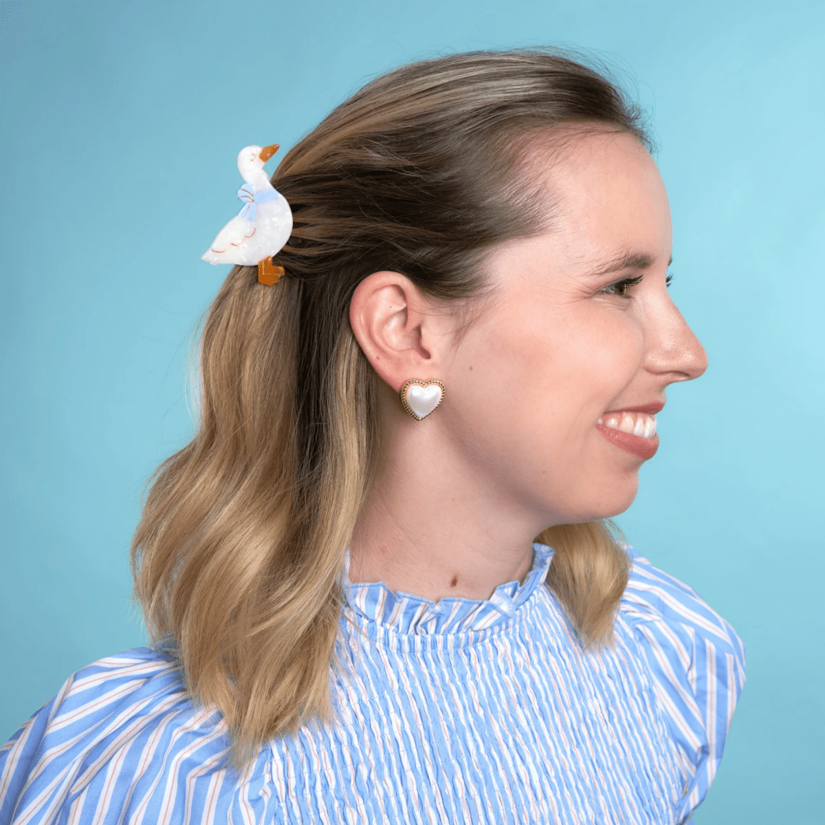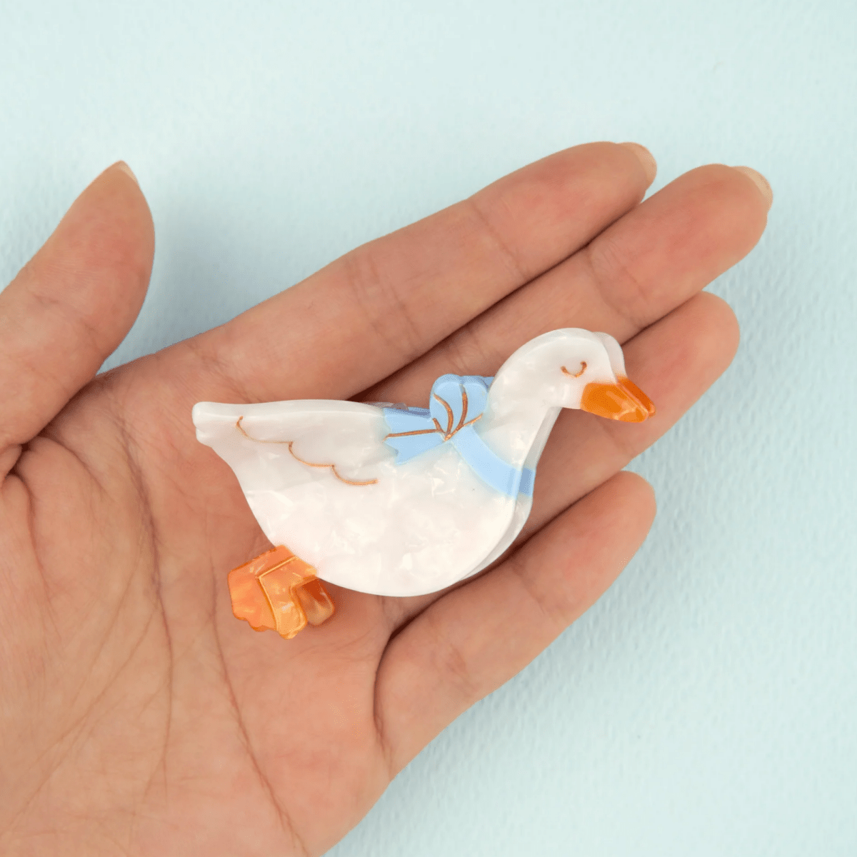Cottagecore favoritt! En søt hårklype formet som en gås med lyseblå sløyfe rundt halsen. Passer best for å sette opp litt av håret eller nederst i en flette.