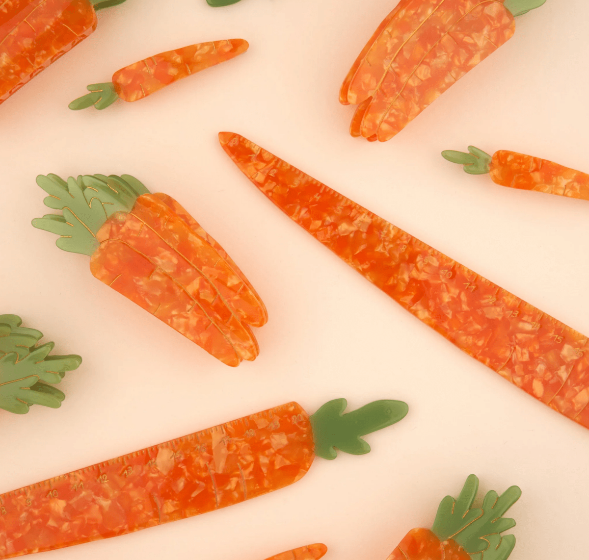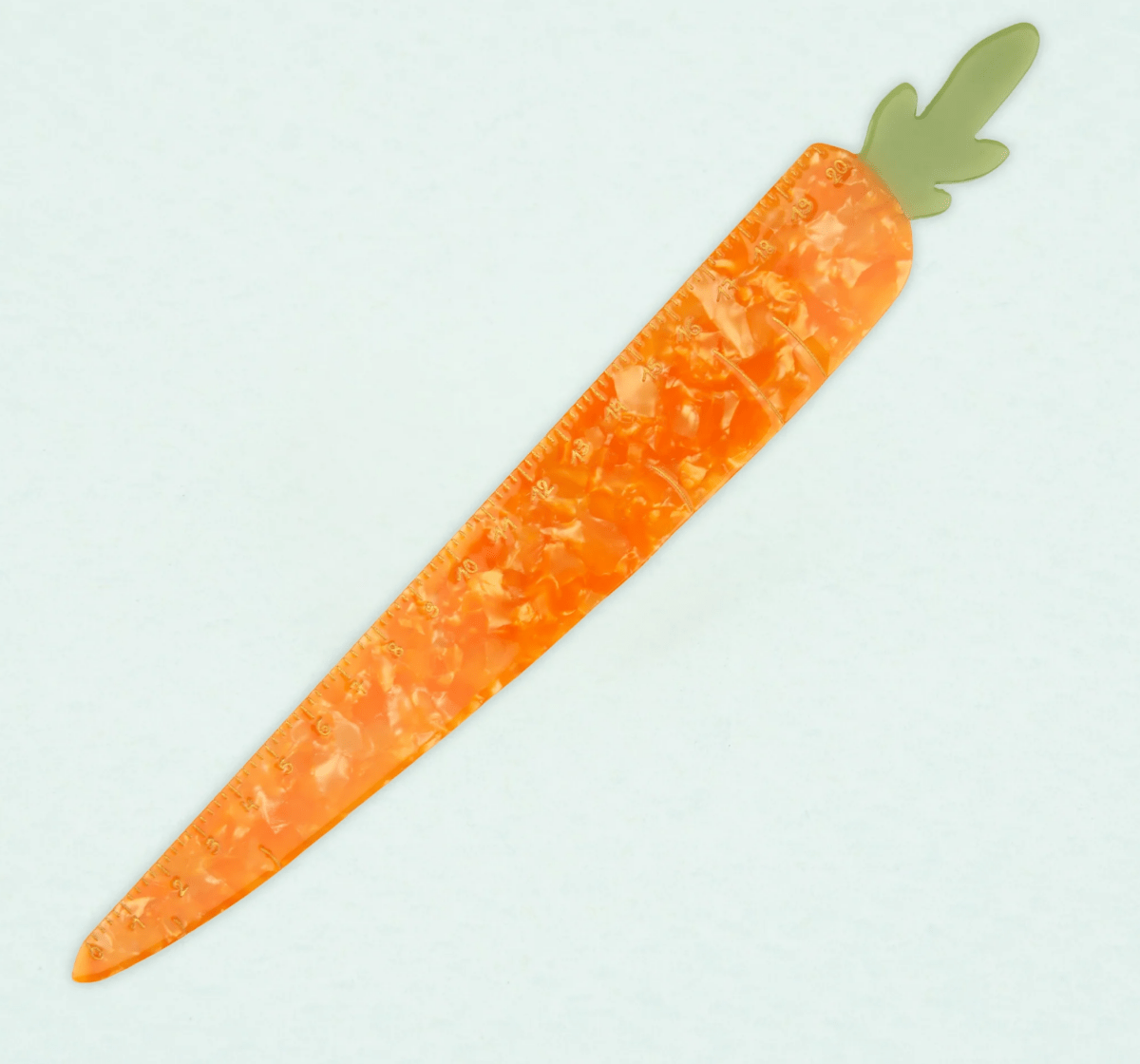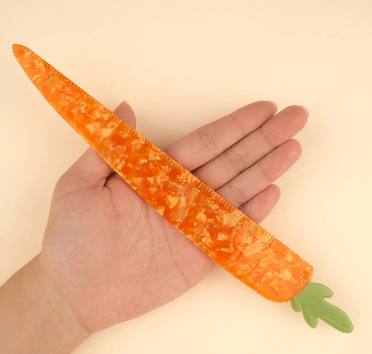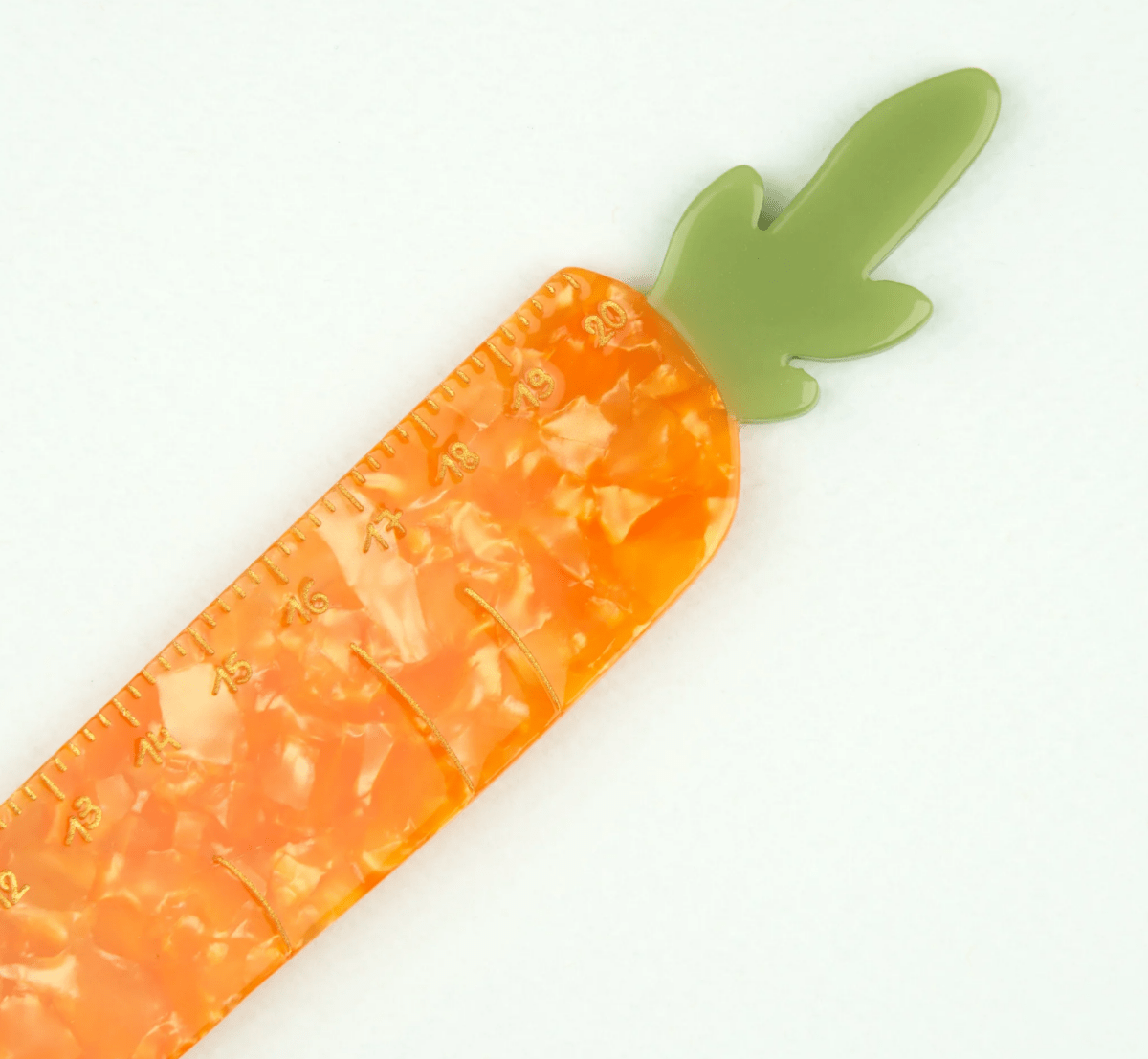 Fargerik og morsom linjal formet som en gulrot. Med sine gullfargede detaljer og tall er det vanskelig å motstå dette skrivebordssmykket!