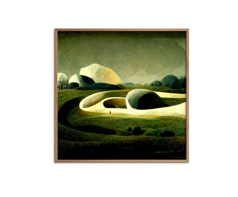 Drømmende plakat (50 x 50 cm) som fanger grønne, organiske landskap med lys og skygge i spennende kontraster. Dansk design i høy kvalitet.