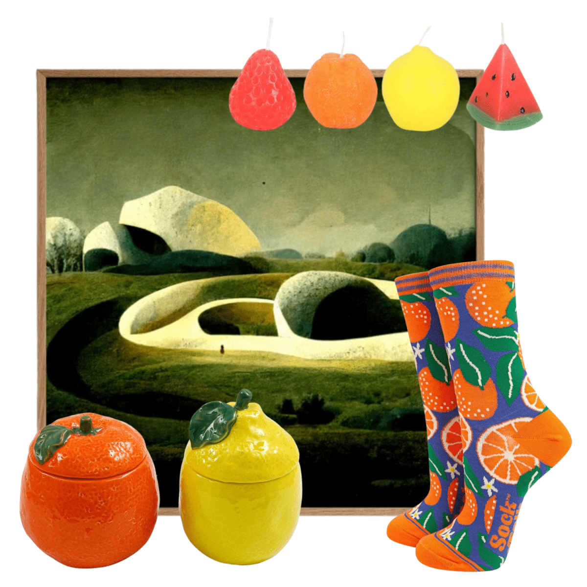 En harmonisk pakke som kombinerer drømmende kunst med lekne detaljer til hjem og hverdagskos. Perfekt som gave eller som en fargerik oppgradering til deg selv.