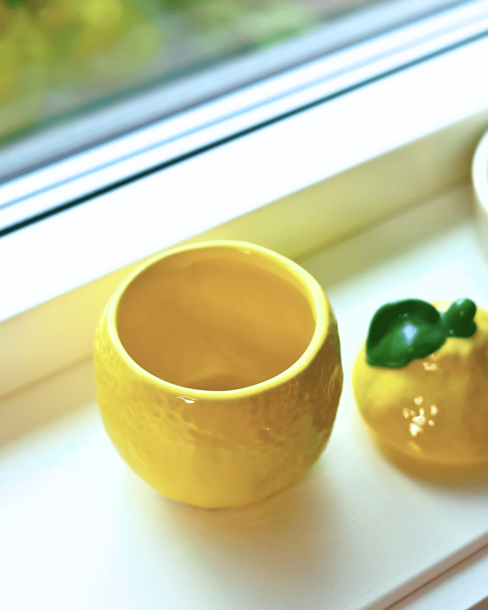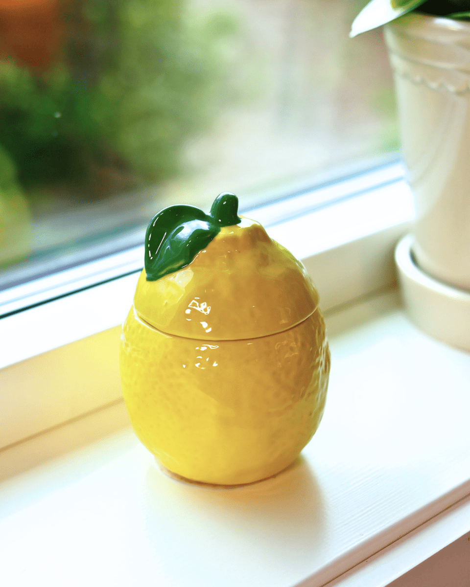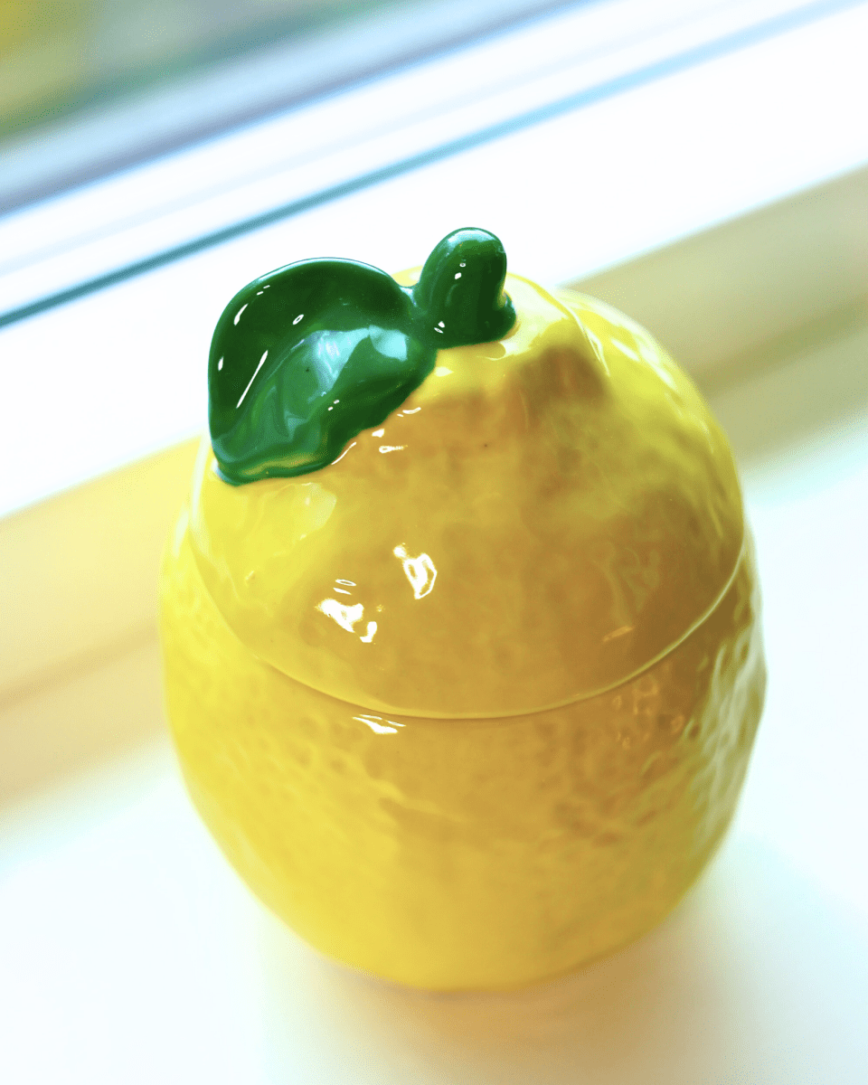 Søt krukke formet som en sitron med lokk.