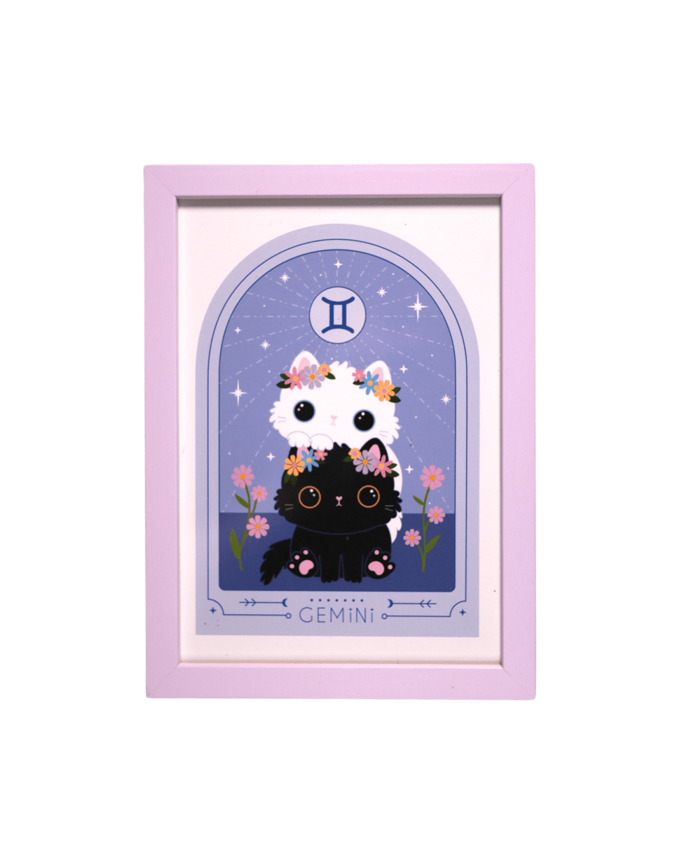 Innrammet Zodiac Kitty Art Print A5 - Gemini