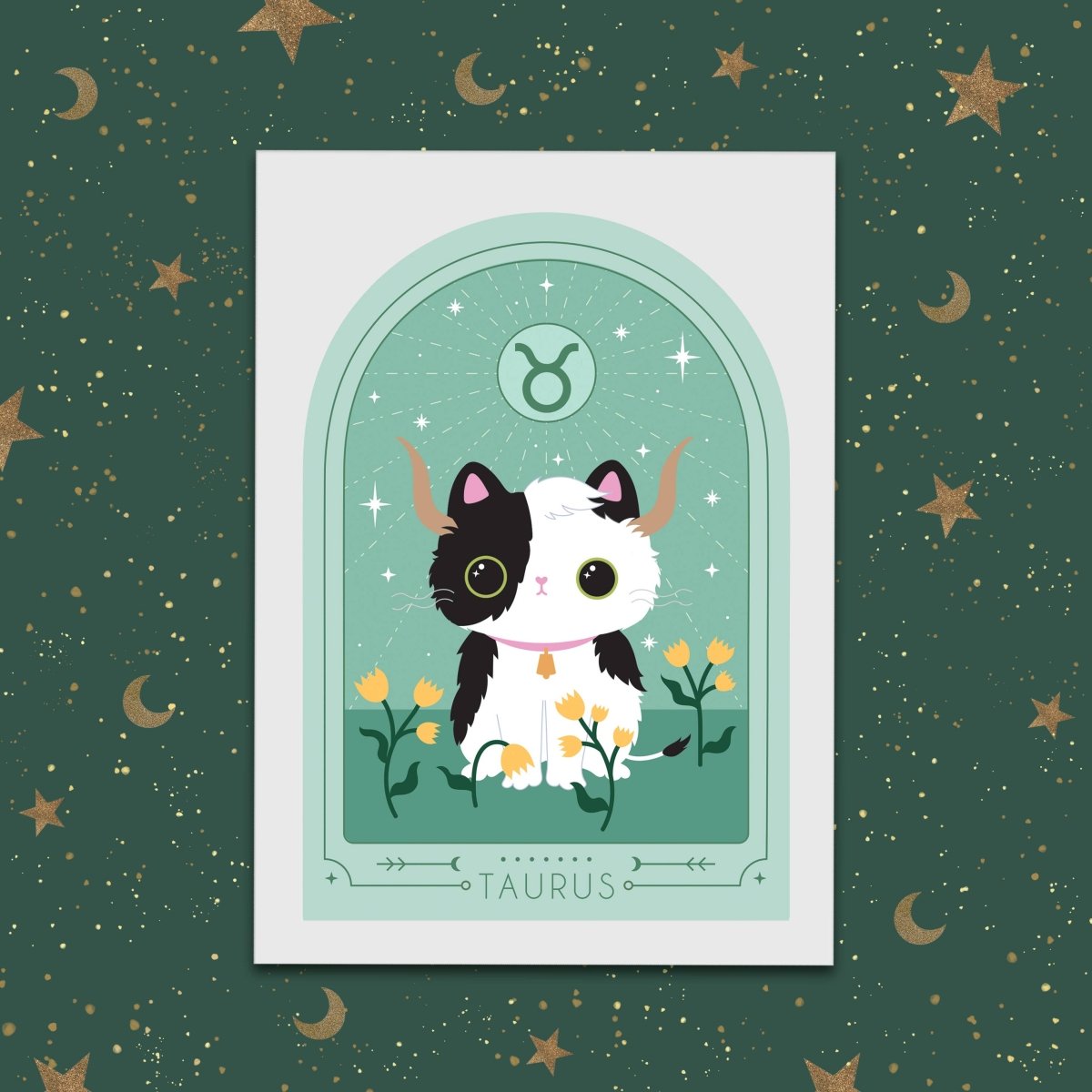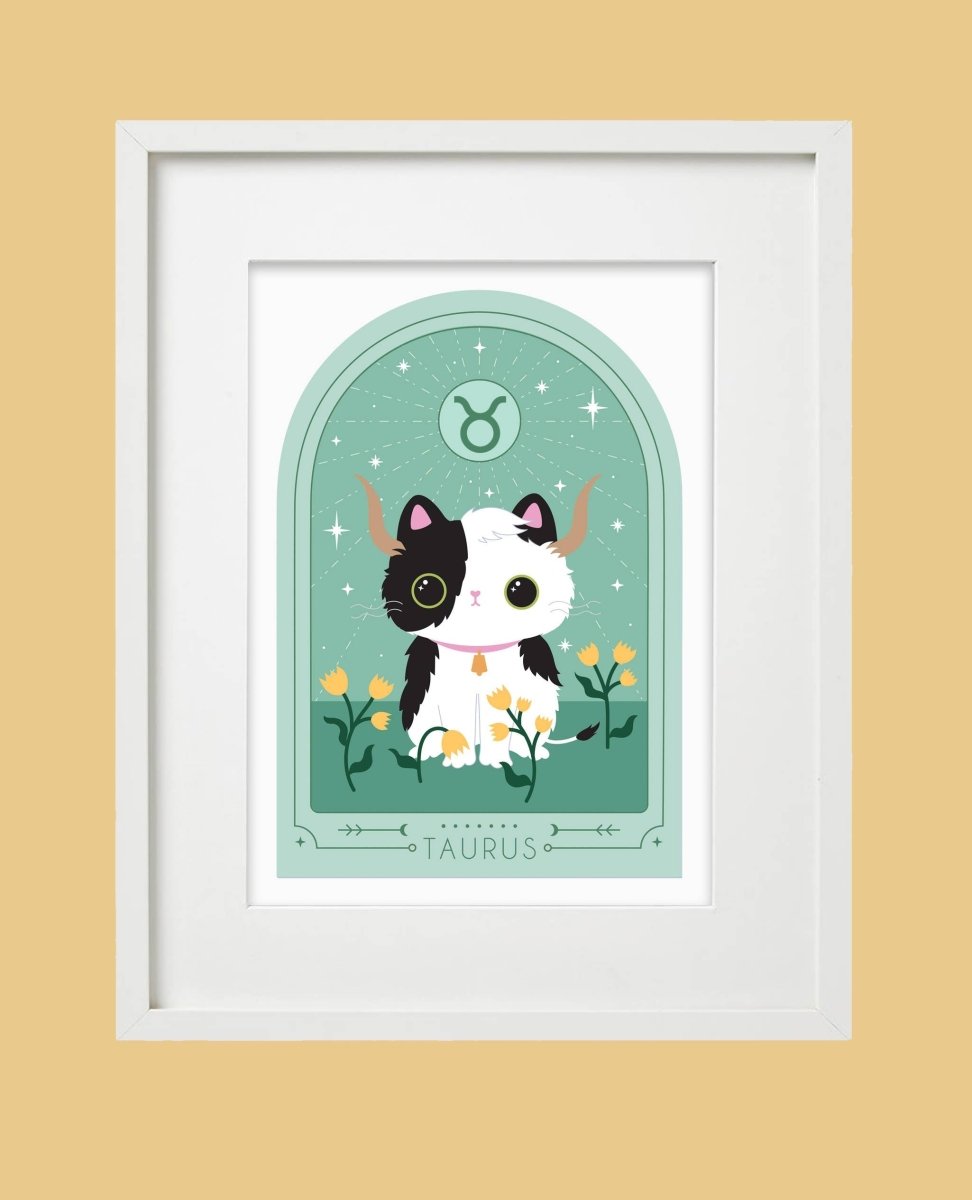 Trykket er perfekt for å gi hjemmet ditt et personlig preg. Bestill ditt favorittstjernetegn i kattestil i dag til deg selv eller som gave til en du kjenner! 🌟🐾