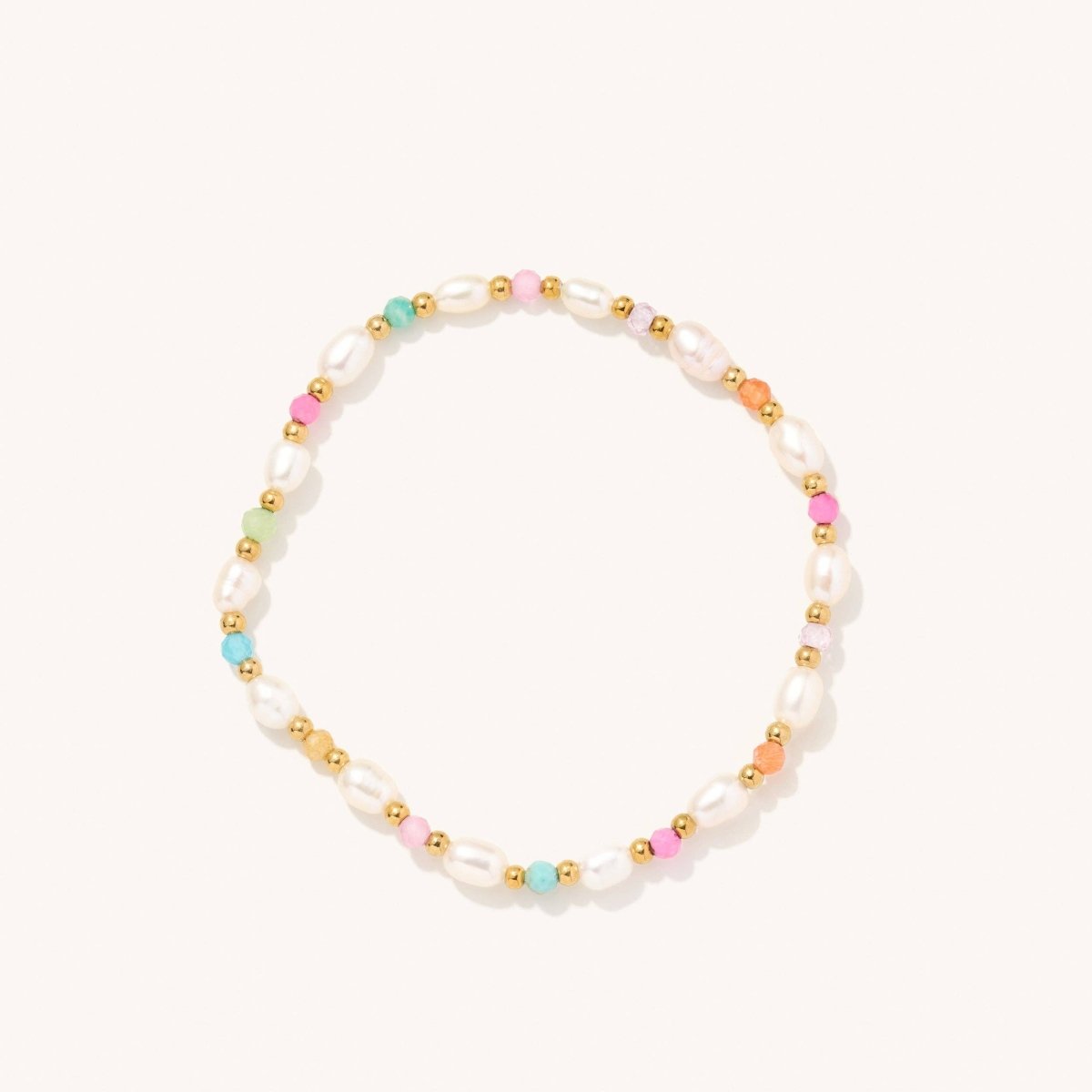 Legg til et lekent og elegant preg med dette nydelige armbåndet! En herlig miks av ferskvannsperler og fargerike perler – festet på strikk som passer de fleste håndledd.