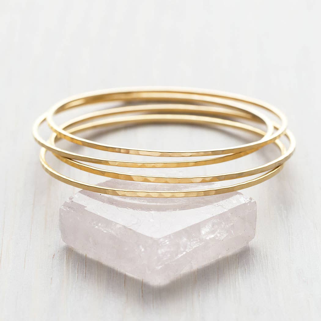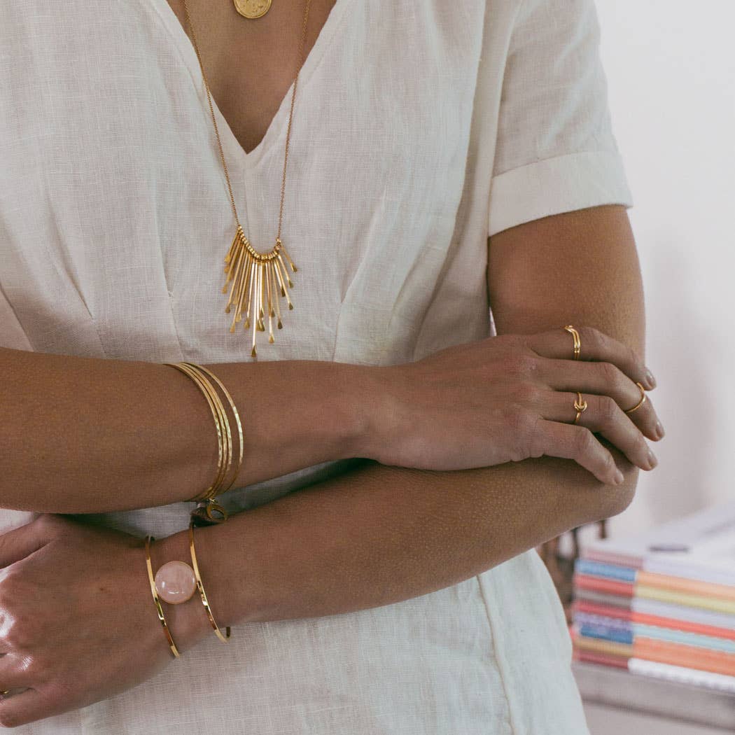 Gyldne, glitrende armbånd som klinger på håndleddene dine. En stack med armbånd er alltid en sommerklassiker, som passer til alt.