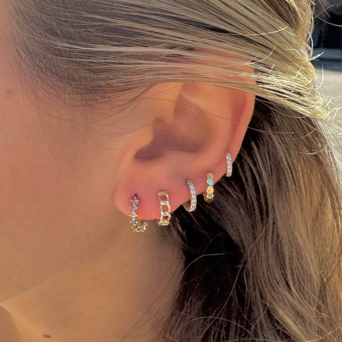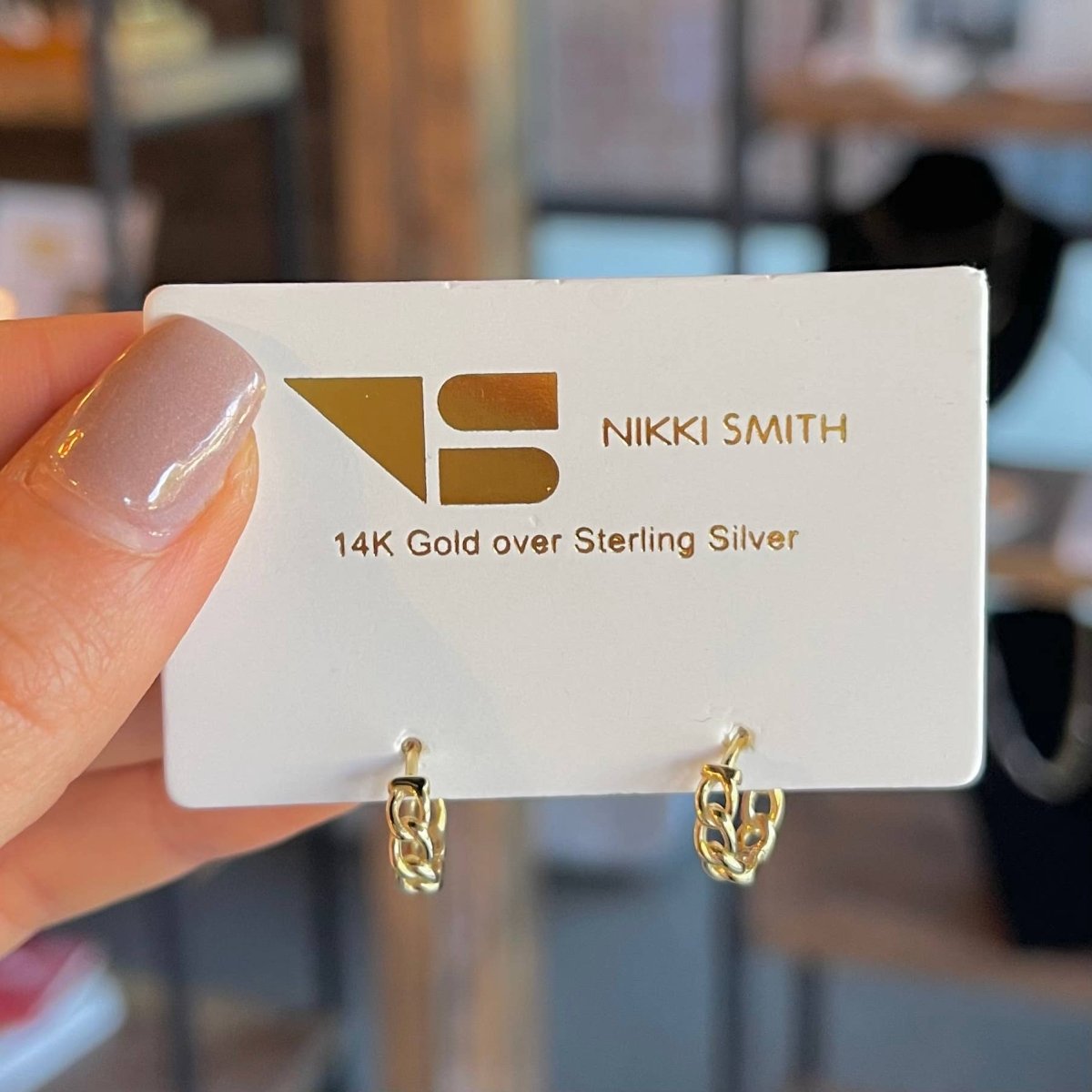 Små, trendy øreringer med flettede detaljer. Kommer i en liten gavepose i tekstil.