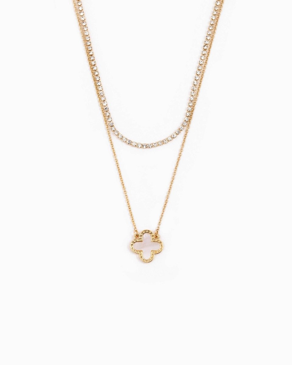 Halskjede med to lag og anheng av perlemor. Tre reguleringsmuligheter i nakken. Ligger pent høyt på brystet.