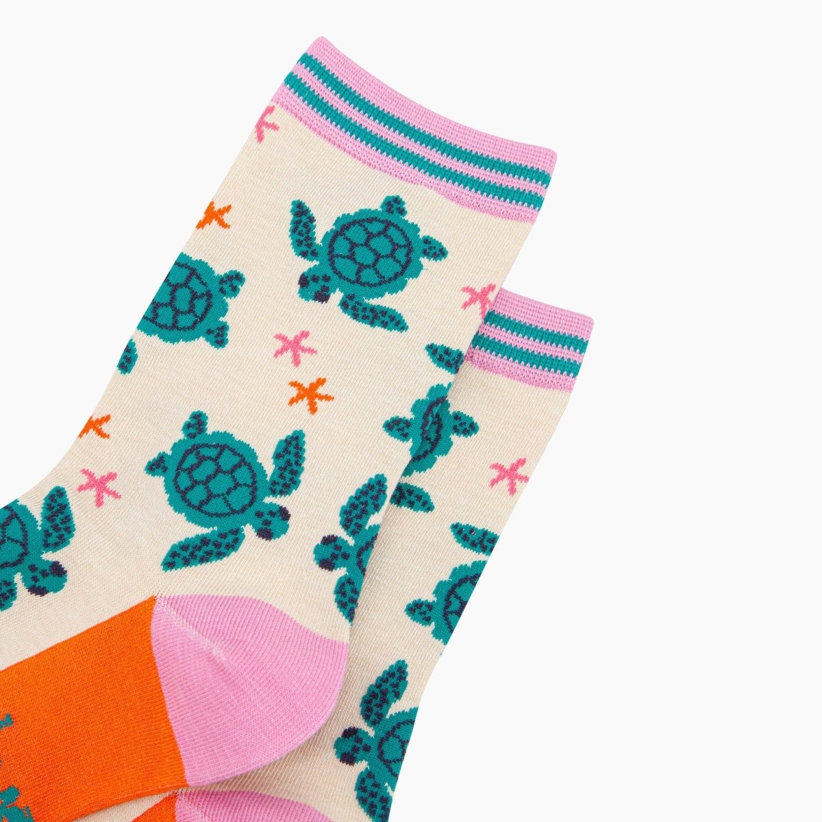 Bambussokker med svømmende havskilpadder og sjøstjerner . Størrelse 36-40.