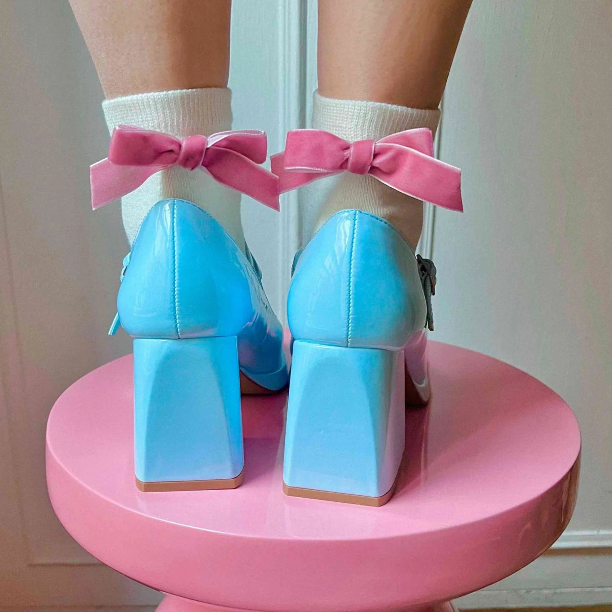 Søte sokker med rosa sløyfer i fløyel 🎀✨