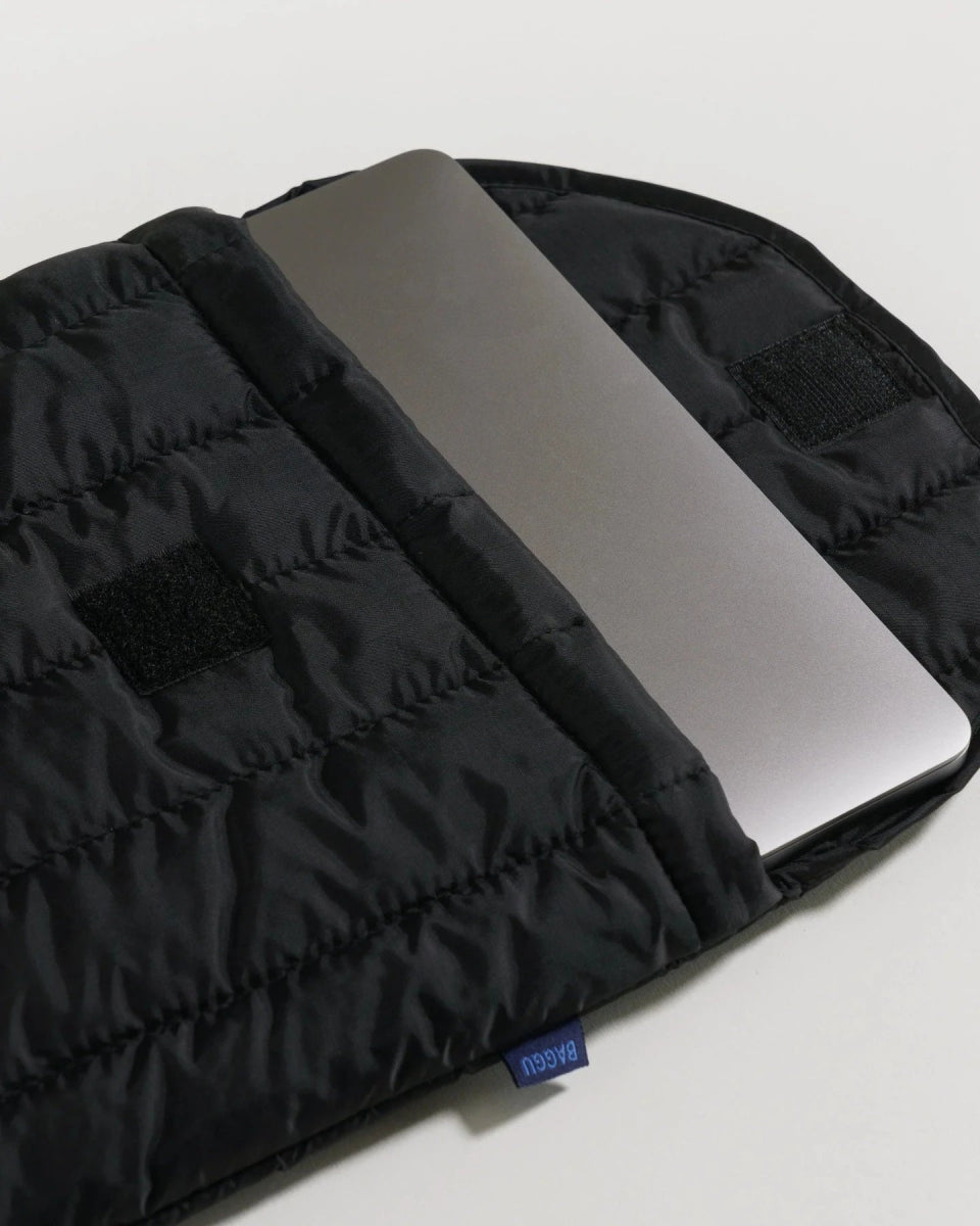 Baggu sin puffy laptop-sleeve er quiltet og fylt for å gi din laptop eller nettbrett akkurat nok polstring for komfortable reiser.
