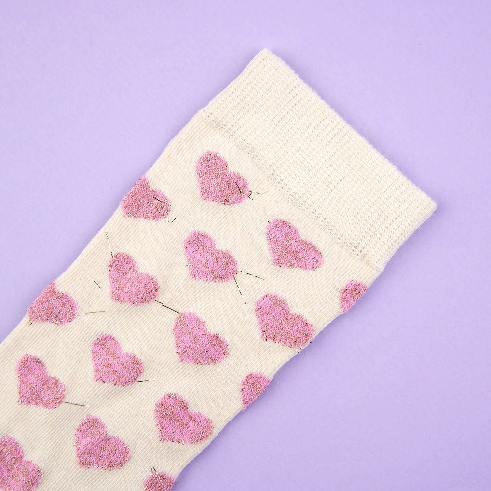 Supersøte sokker med rosa glitterhjerter. Will you be my valentine?