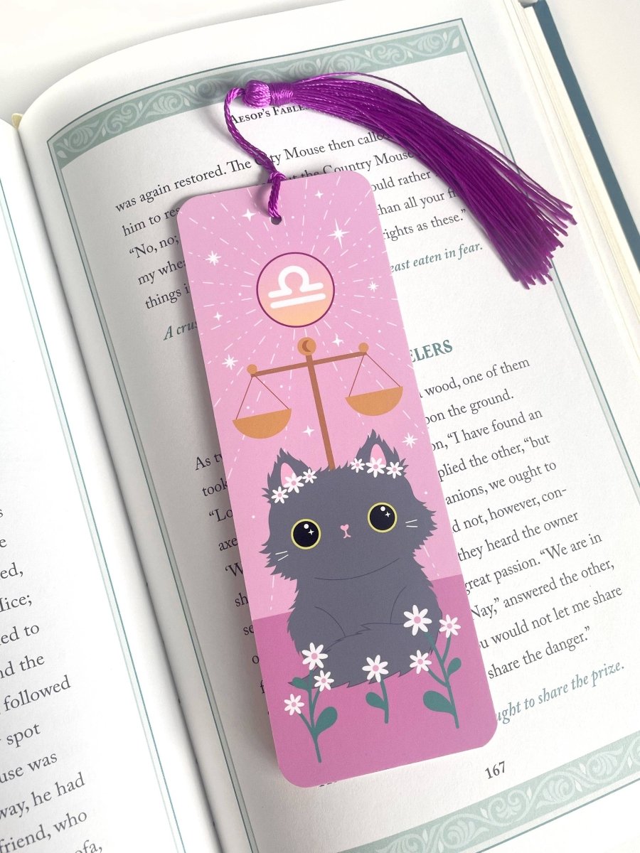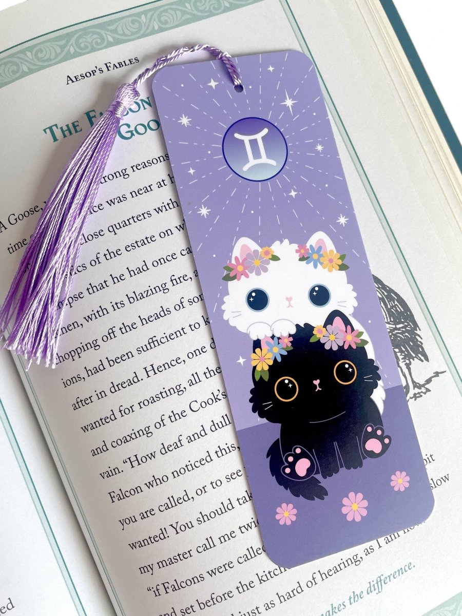 🌸 Våre bokmerker er ideelle for katteelskere, bokelskere og astrologi-entusiaster. Hvert bokmerke har en søt dusk, kattemotiv på forsiden, og navnet på stjernetegnet på baksiden. Laget av tykt papir med matt finish ✨